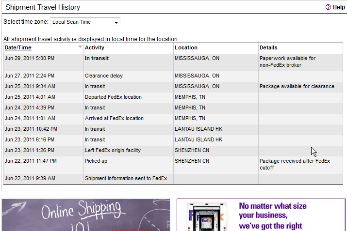 Louisville, KY, United States 12/01/2011 4:37 P.M. Departure Scan