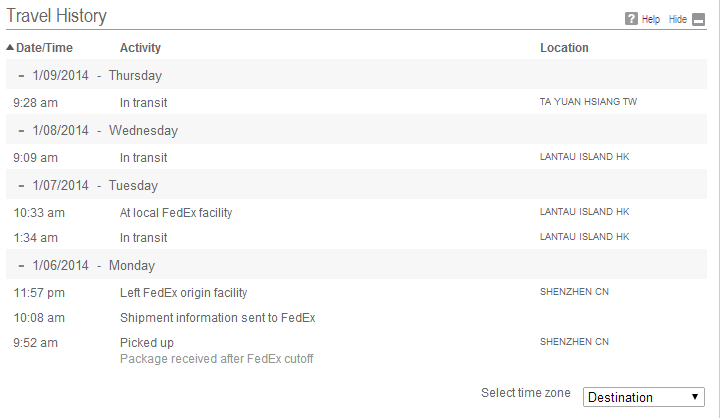 EPZ, China 11/30/2011 2:31 P.M. Departure Scan