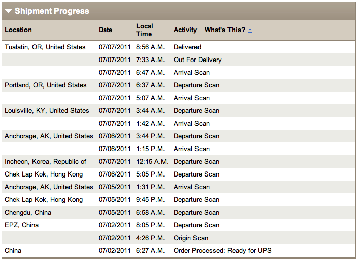 China 11/30/2011 7:24 P.M. Order Processed: Ready for UPS