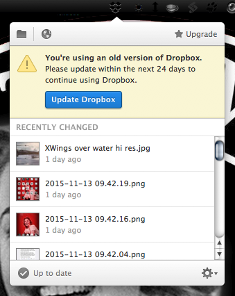 EDIT: 05.25.2015. See Czo's solution at post 71. Czo has created a version of Dropbox that directly fakes version information to fool Dropbox. This makes modifying the SystemVersion.plist file unnecessary. Note that this makes the interface reflect the newer version and therefore you will have some icons that are clickable but do not function. To get to Preferences hold down OPTN when you click on the Dropbox icon in the menubar. All regular Dropbox functions are unaffected.