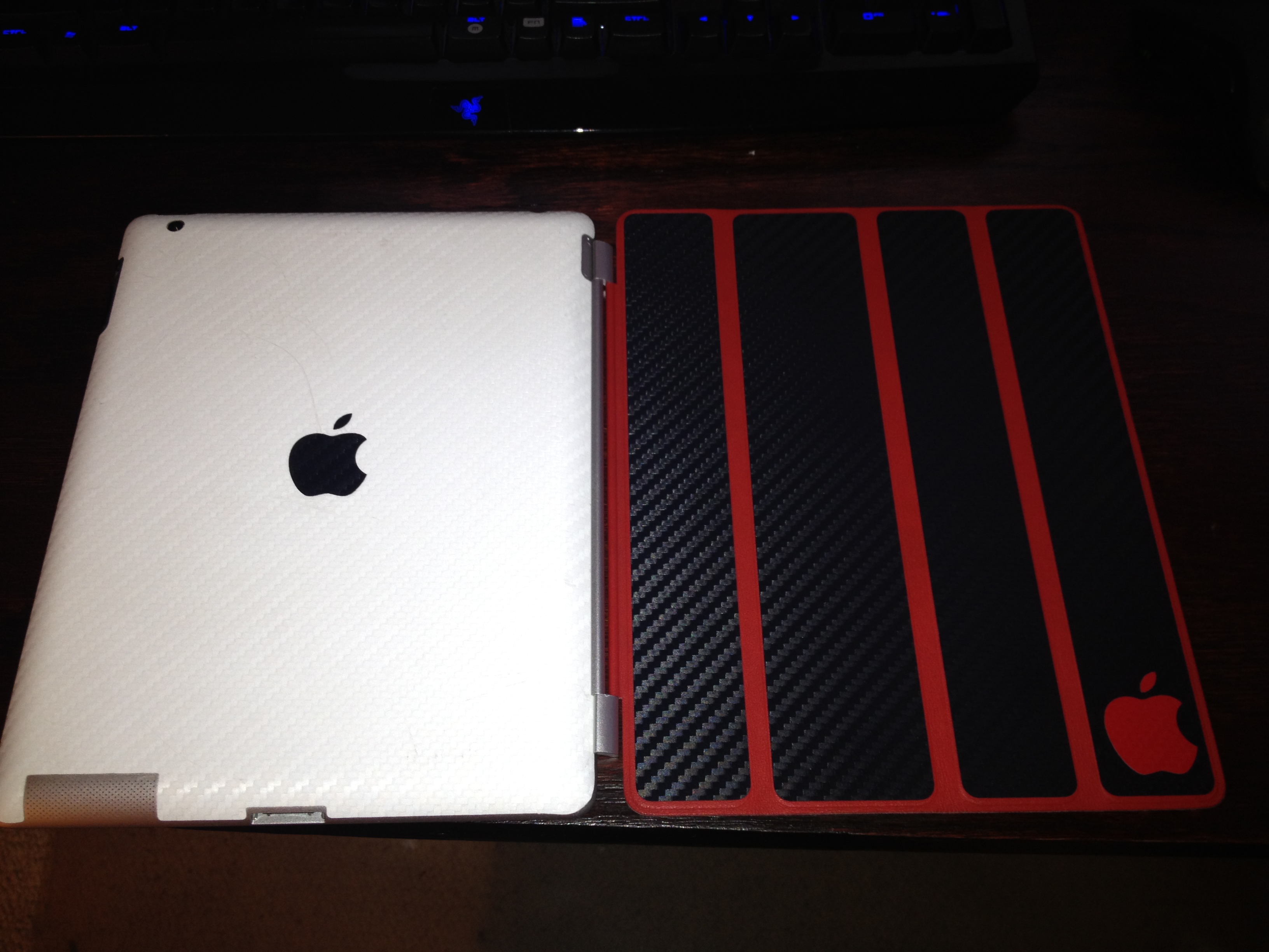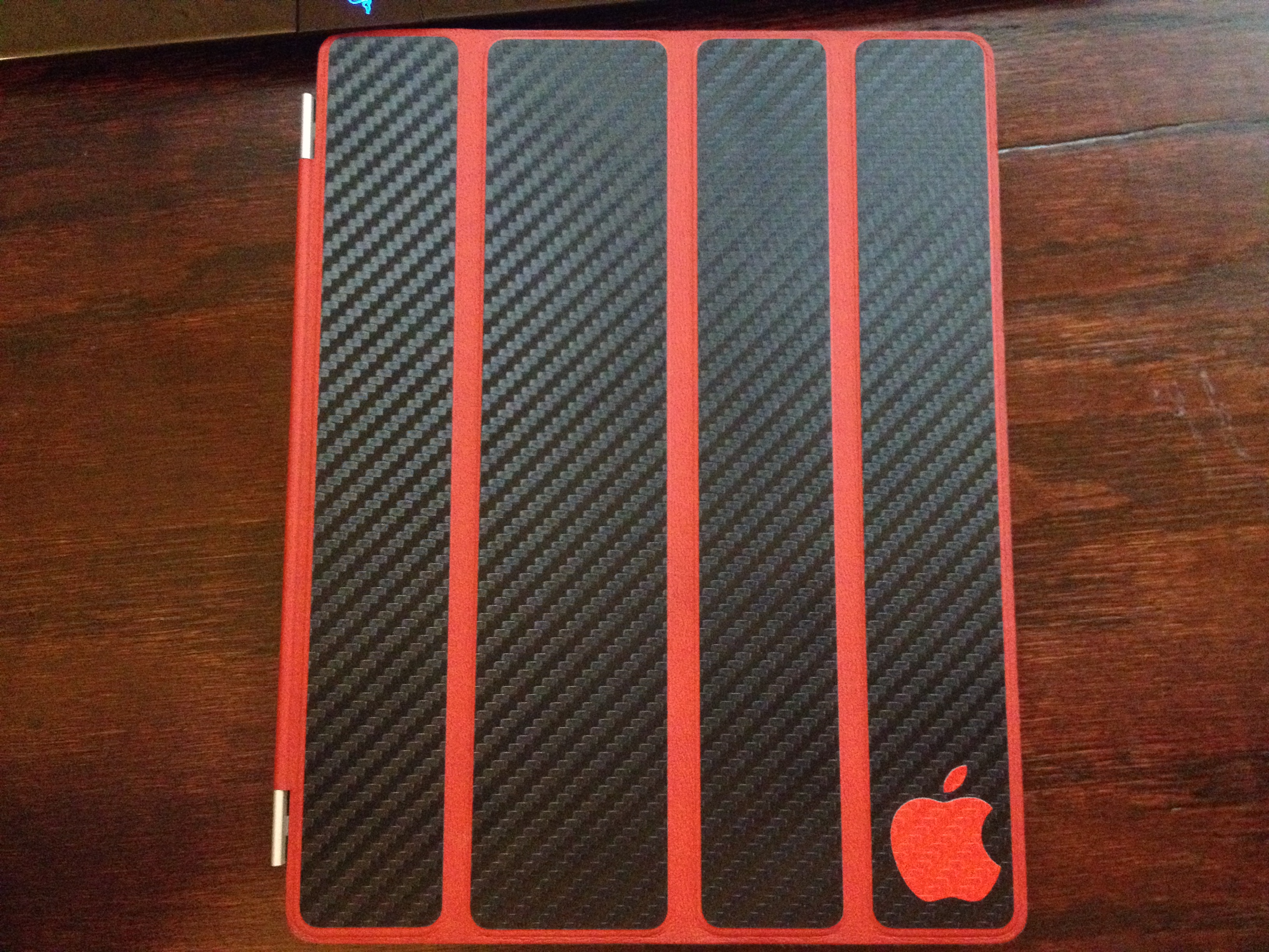 man, u don't have taste. why would u put a carbon sticker on the perfectly minimalistic red smart cover. peel it off then it will look better. :D