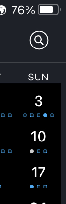 In the case of Calendar 366, in the month and list view, you get a dot in the color of the calendar if there is an event there for the day. Multiple calendars, multiple dots.