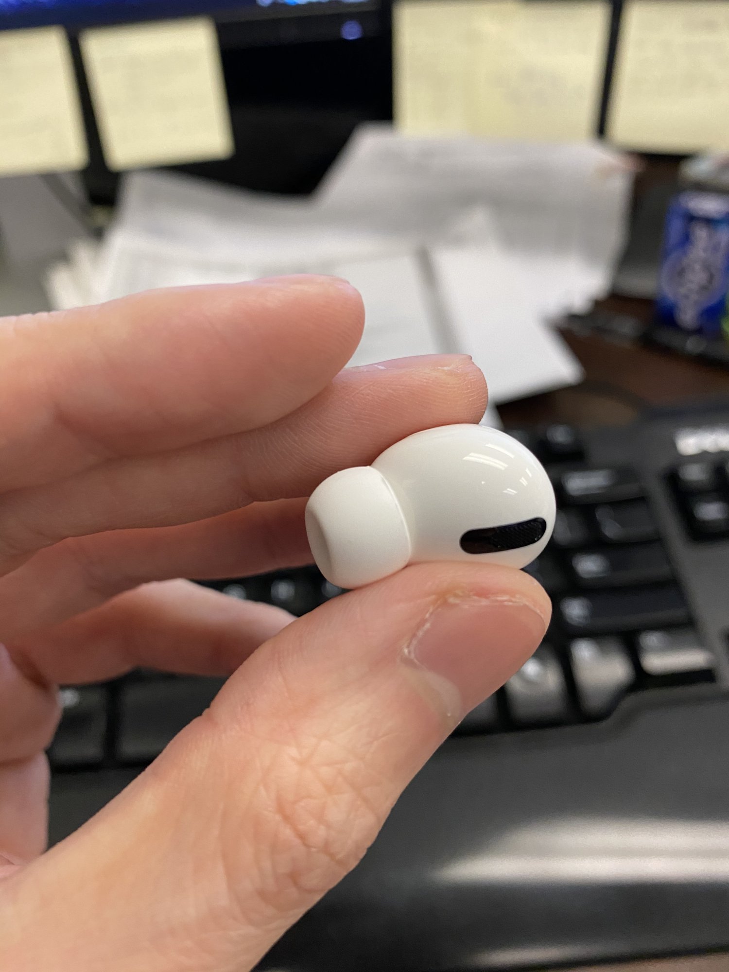 I would have claimed it was faulty packaging and asked for replacement AirPods.One of the large tips with my APP took the top of the card off with it and so was stuck inside. The only way I could get it out was to poke it out with a sim tool. I didn't know there is a thin mesh/membrane there, therefore poked a hole in it.
