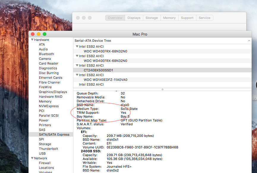 You can check to make sure that TRIM is enabled by Apple Symbol > About This Mac > System Report > Hardware > SATA/SATA Express > Your SSD > TRIM Support.... Or look at this: