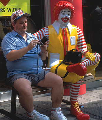 That's a good point too, about what we're teaching our kids about how to eat. It's not just the fast food, either. Look at any kid's menu at nearly any restaurant, and they're the same: hot dogs, fried chicken fingers, grilled cheese, and maybe spaghetti, quesadillas, and hamburgers. After all, we can't expect our toddlers to eat real adult food--they'd make a mess! they won't want it! it'd cause trouble! So we give them high-cholesterol, high-fat fried crap--sometimes at home, too. That's really beginning to annoy me every time I'm out to eat with my two-year-old nephew: there are no healthy choices compatible with his skill levels with utensils, no matter where we go.