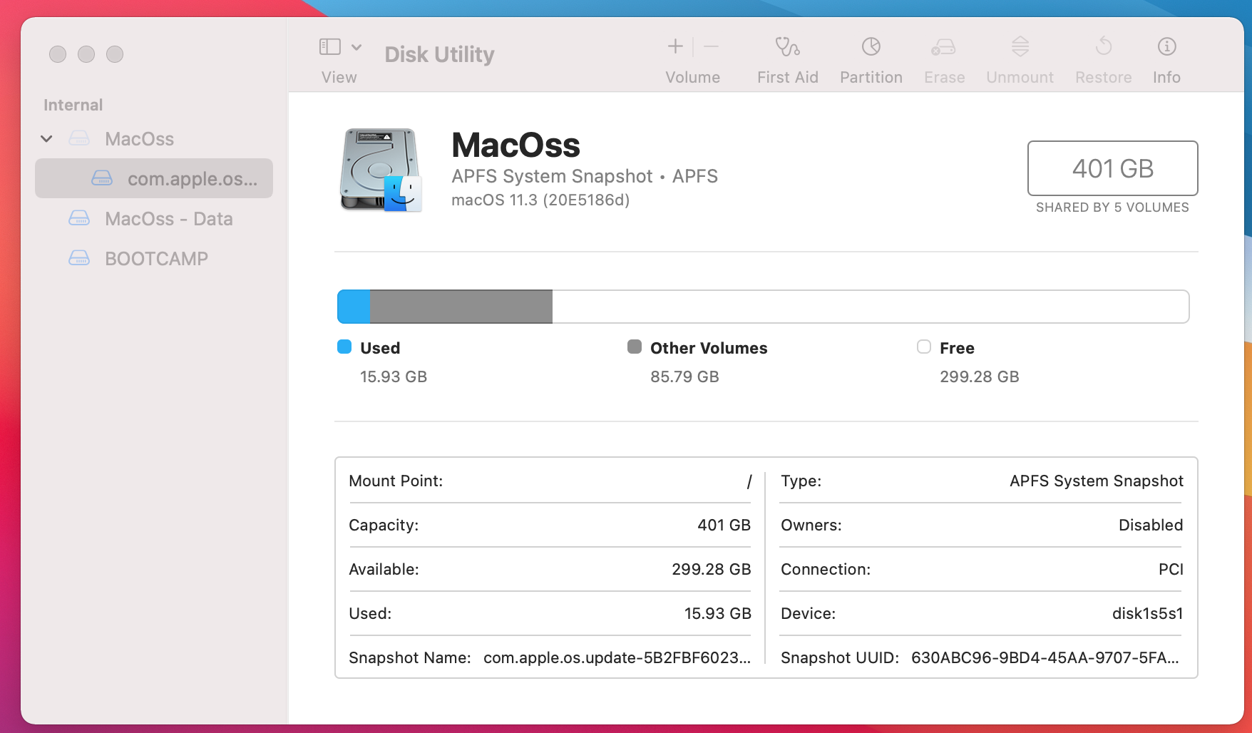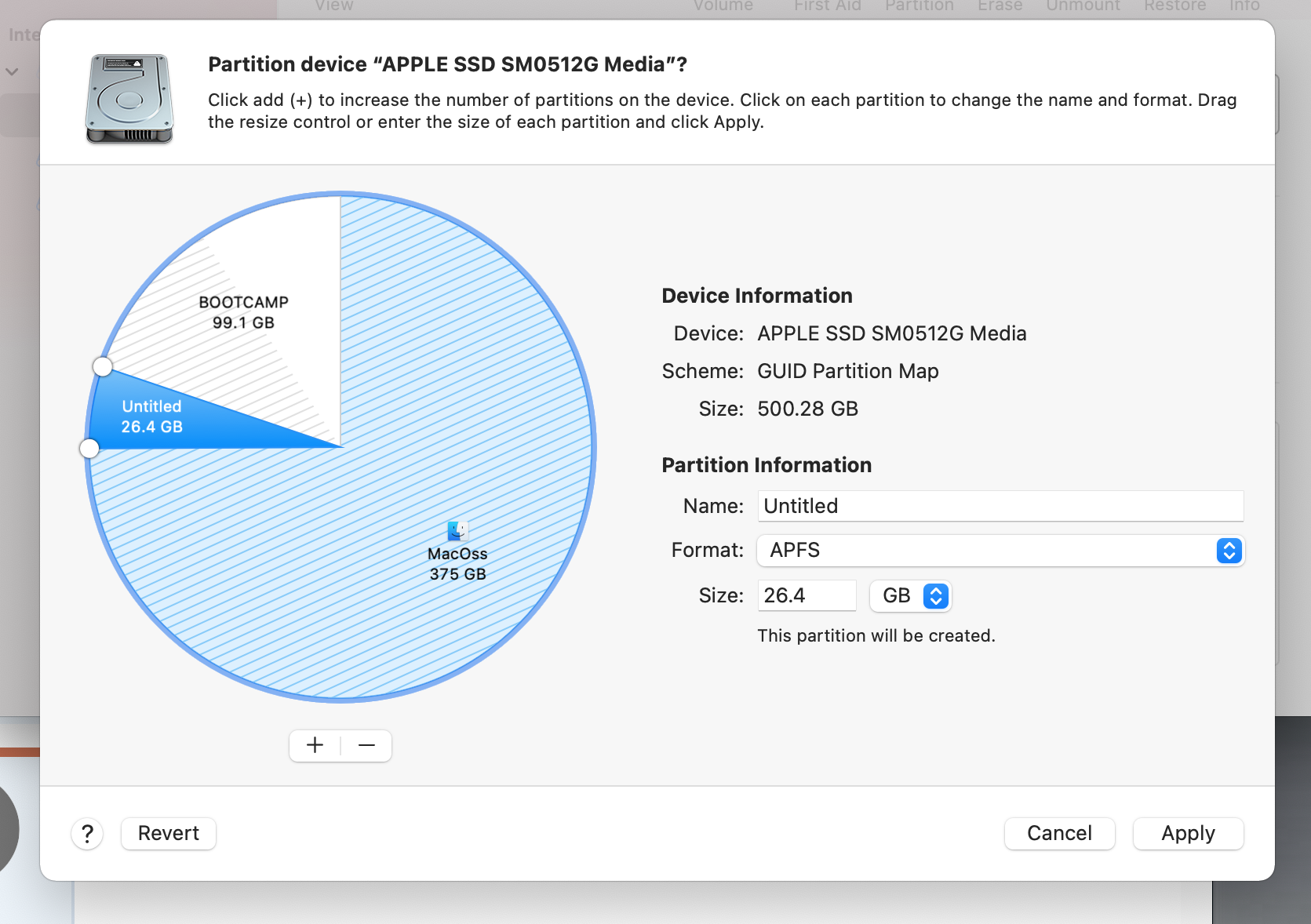 In disk utility, I have followed the protocol of creating an additional partition within my MacOss. This is where I get a little confused.