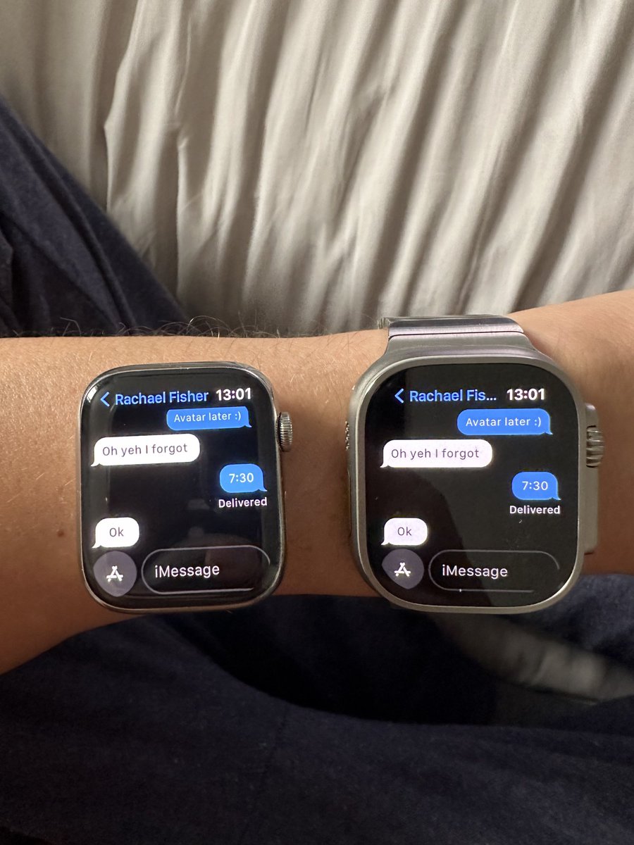 Hmm, that's strange the name (Rachael Fisher) is cut off on the Ultra. The Ultra looks like it's a significantly bigger screen because it's flat, IMO.have you not seen them side by side, there isn't any extra screen for text if anything it cuts it off, its smaller View attachment 2081180