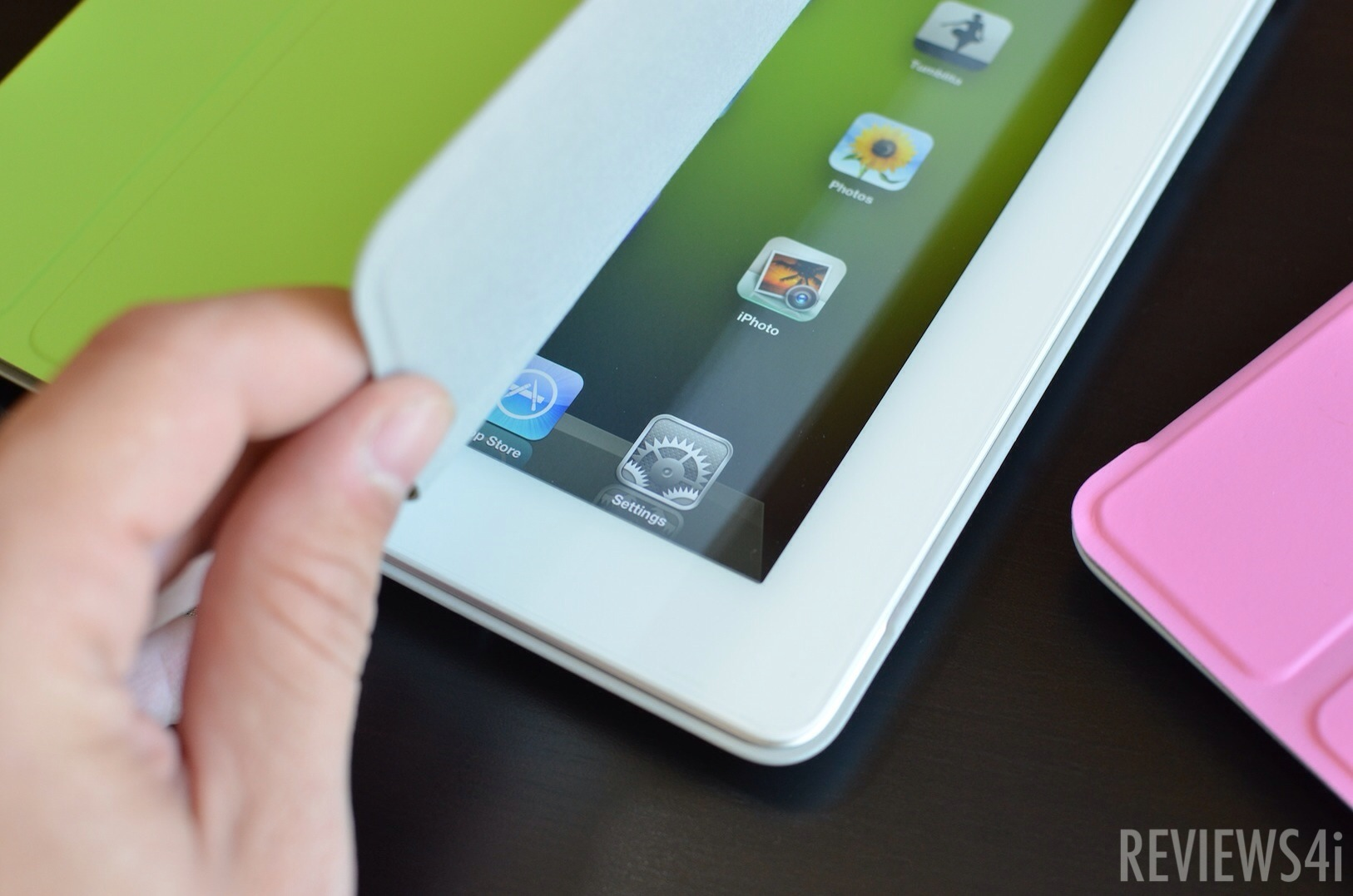 First off the Bridgeway comes in a variety of colorful choices for pretty much anyone which is nice. We had a chance to look at the green and pink versions and I can say they match up exactly with the stock colors on Apples Smart Cover options. The front of the case is basically your normal Smart Cover design that youre used to but instead shares a thinner material than a real Smart Cover from Apple. This is a bummer unfortunately since it cheapens the overall feel of the case. While it may look exactly the same as a genuine Apple Smart Cover it does not entirely perform and feel as nice but thats what you get with a case that is more affordable.