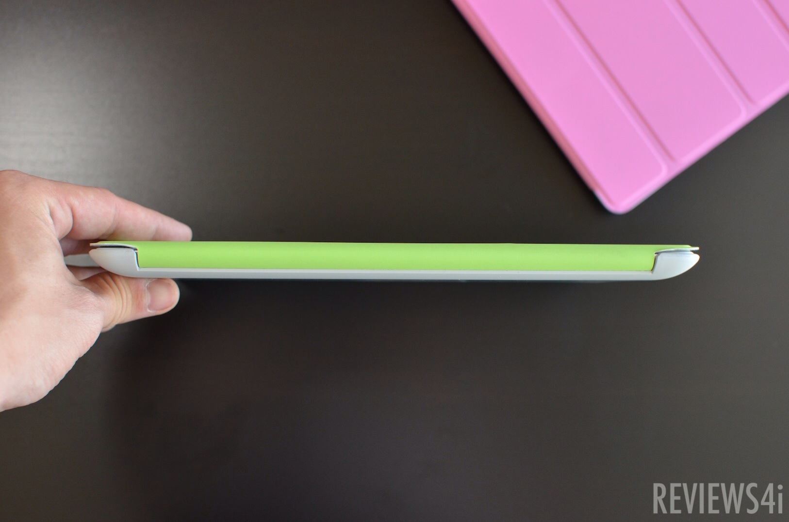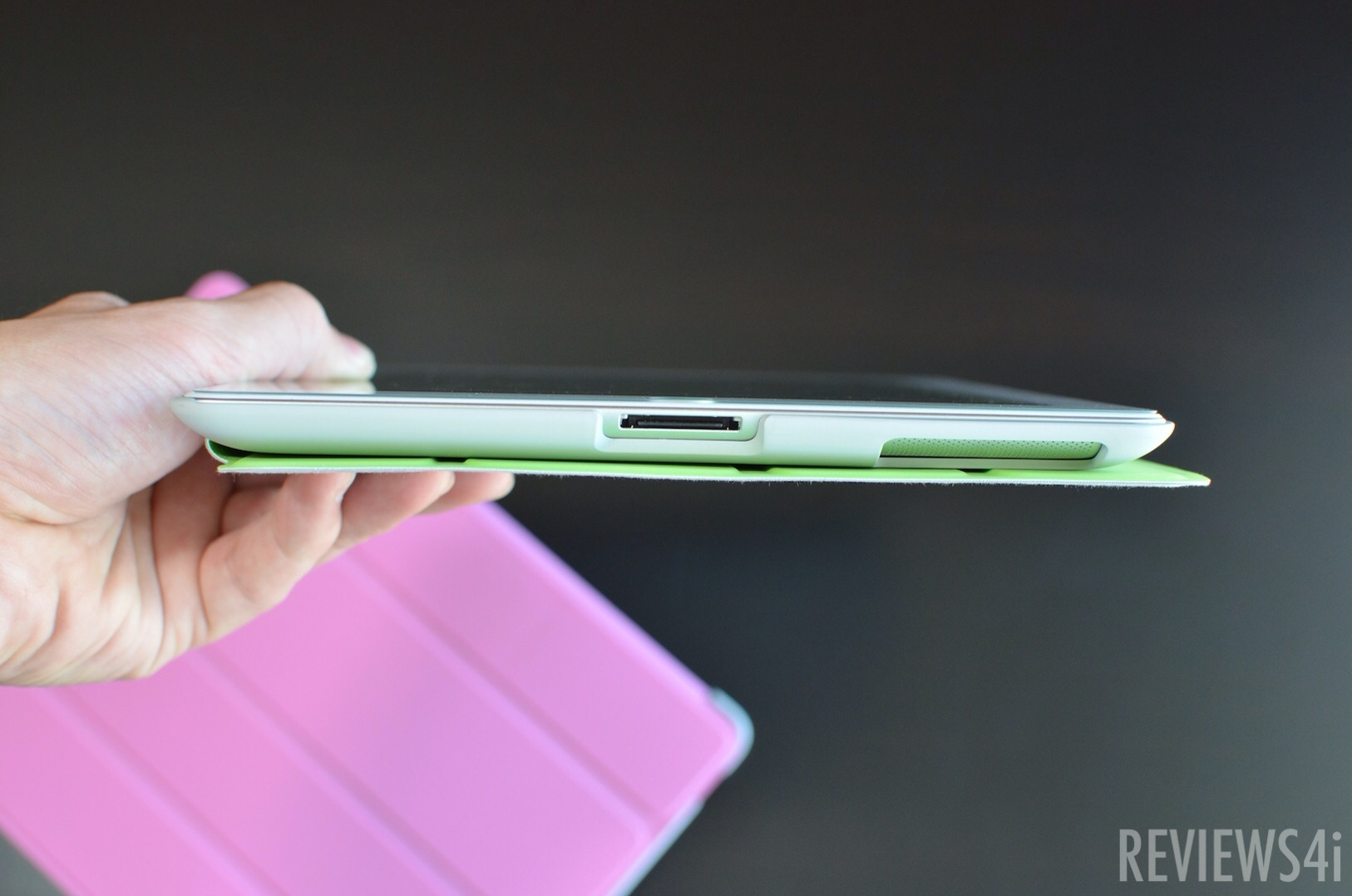 The thickness of the case stays at a minimum with the slim back cover and super slim front Smart Cover. This is definitely a case for the iPad user that doesnt want to compromise their iPads slim profile for added protection.