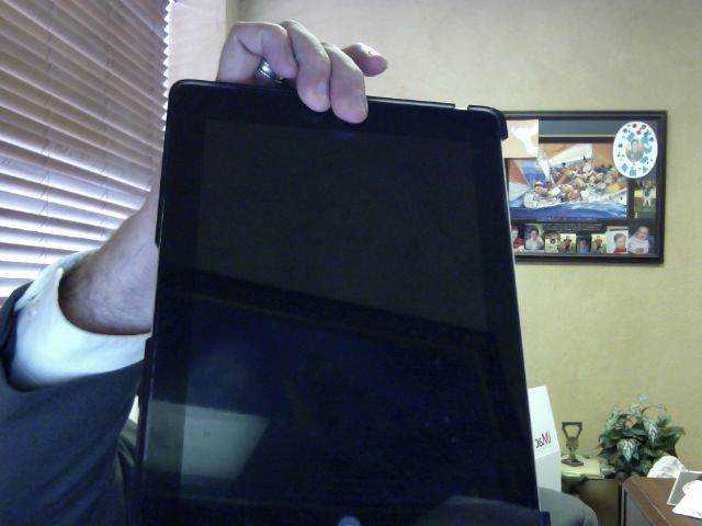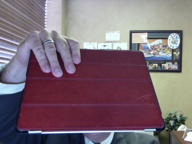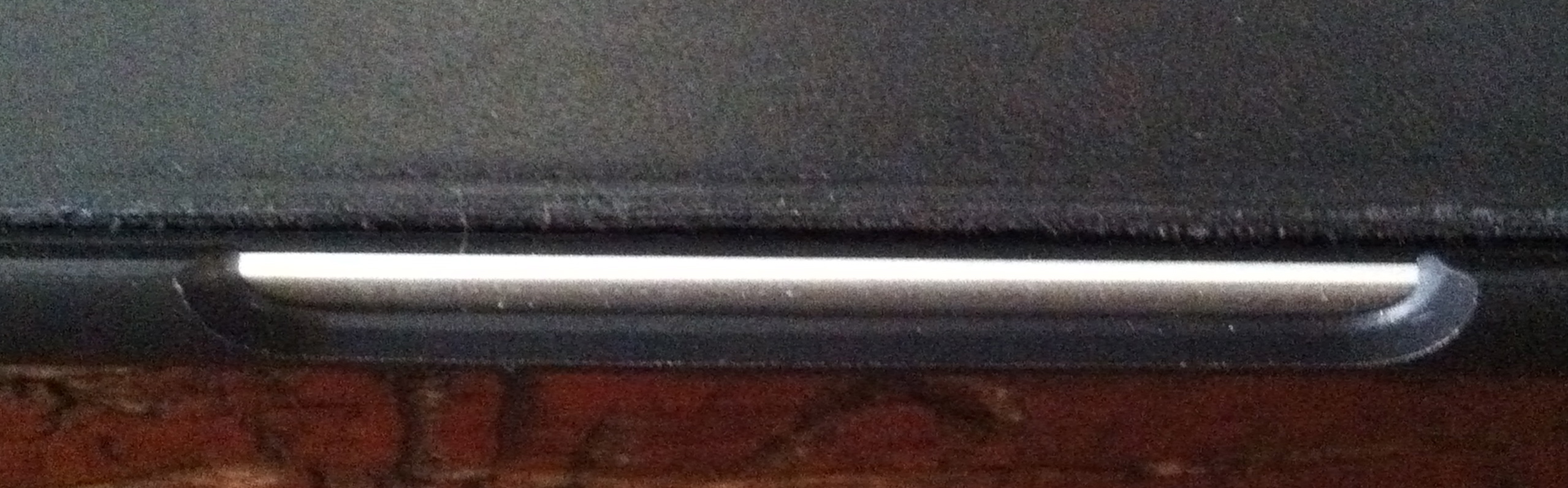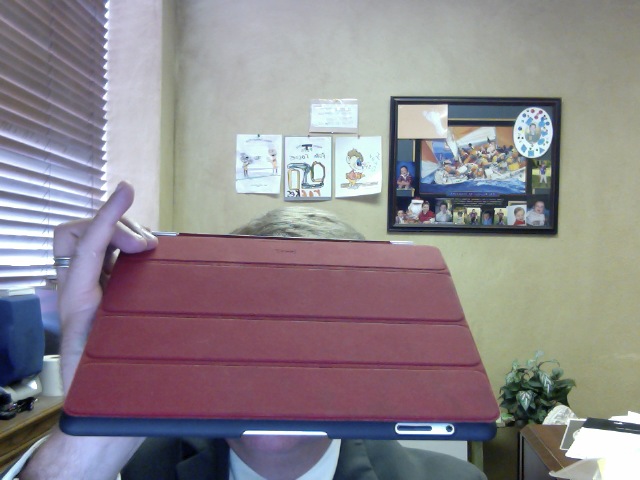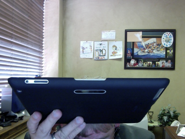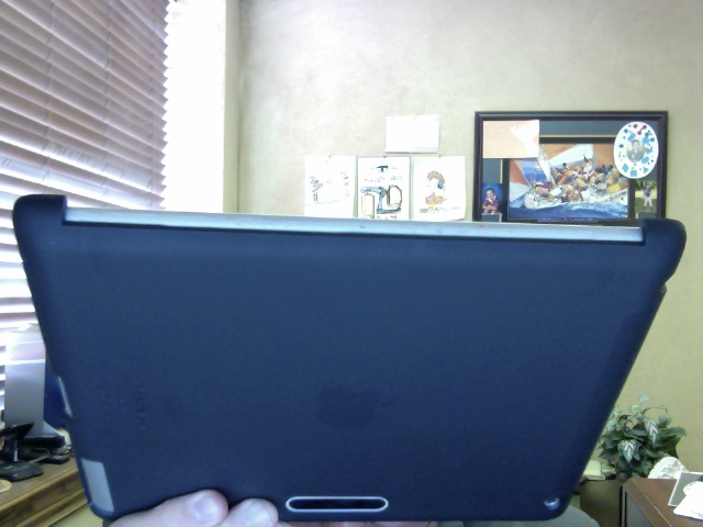 2. There is a small glossy strip on the backside of the case illustrated in my second and third photos. To my surprise and delight, it's function is to hold the smart cover snugly to the back of the case when it is fully opened.