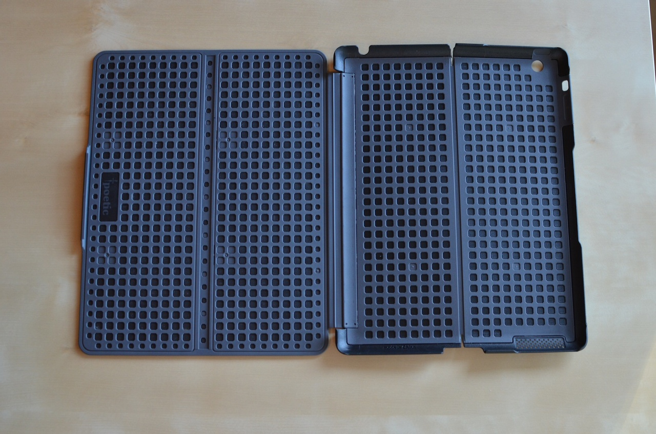 The entire exterior of the case is made of a super strong polycarbonate plastic that will ensure your iPad will stay safe no matter what the conditions. Upon opening the Hybrid you will see the silicon honeycomb design that goes throughout the interior. This is to ensure a safe absorbing shock material all the while being super light since it has a honeycomb design to it. The iPad fits very easily into the case with a simple snap and stays very secure.