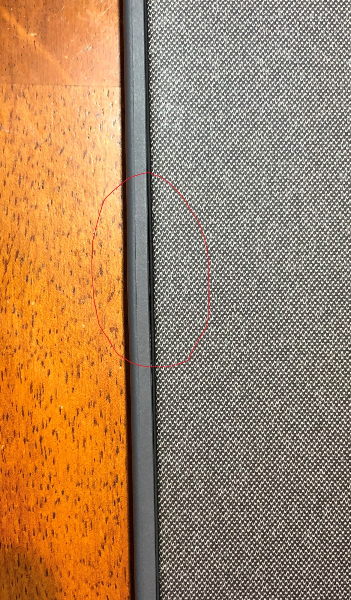 I took a close look and it is not where the silicon is attached to the case. It is very definitely the pin connector from the case where it meets the iPad not sitting flush. At least on mine. If I look on the back side where the silicon is glued to the case, there is a slight bulge but no gap like on the front where the pin connectors meet.Thanks! I also noticed that the area you circled has a "seam" where two parts of the hinge joins together and there is a tiny gap. On my case, I noticed that I am able to close this tiny gap when I press in the hinge from the side. Just wondering if yours does it too? Just wanted to make sure it's not a case where the glue on my hinge is falling apart...