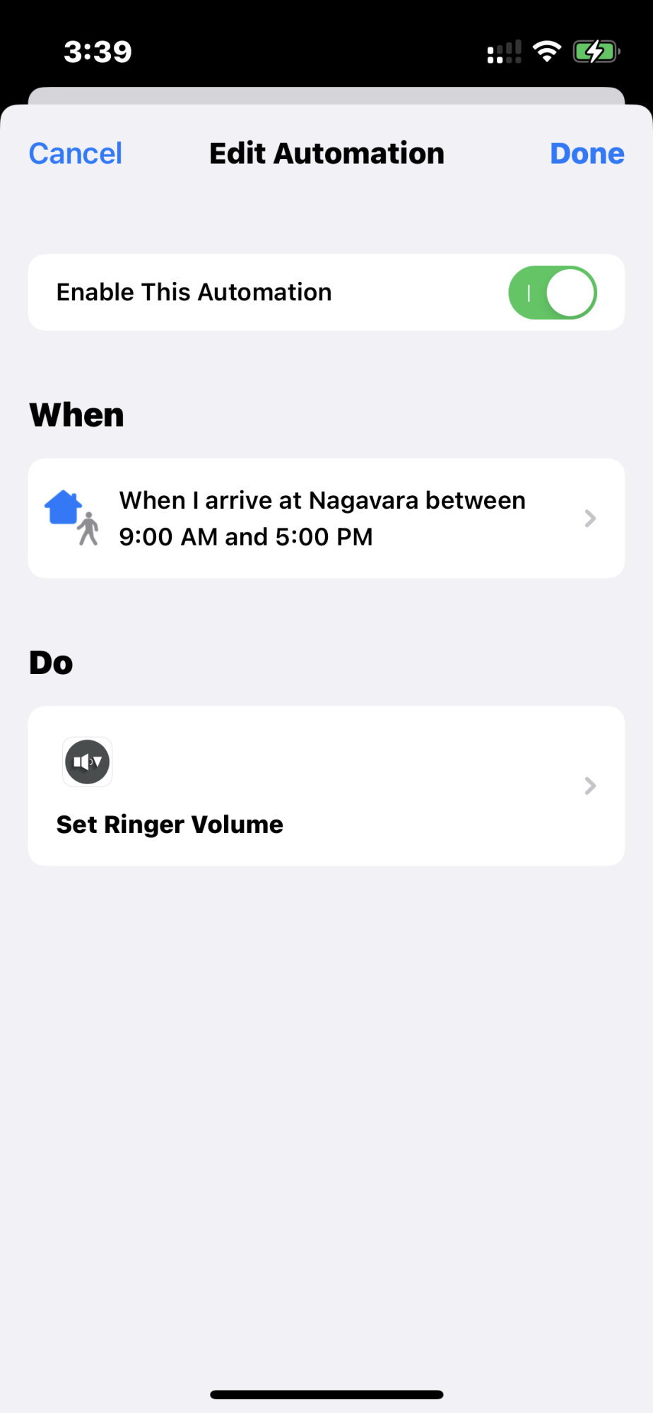 Does anyone have a shortcut where you can set a specific ringtone volume to be applied as soon as you leave a specific location? Can this be done?