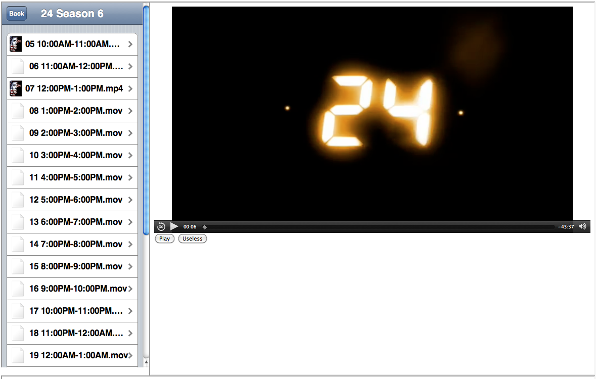 Ok a small bit of info on my code, "video" is the name of the iframe that the html5 player, and mediaSwitch is a javascript function I store that will change the file that is playing to whatever is passed in as a parameter. What my final goal is to have a video player beside a small web app (this is meant for an ipad) and that web app will list all the files and if they are a .mp4 file clicking the link will change the video in the player to that video. I have everything working and I can display the files and do a raw link to them but when the php script generates the link for the file it doesn't execute the code. I use the following to try and generate the link.