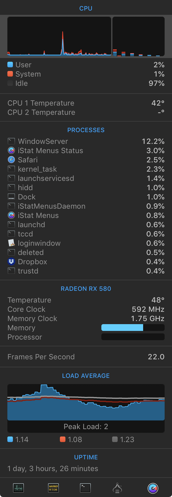 interesting I saw this in other peoples screen shots on newer macs but I could not see the stats on my MP5,1 so I assumed it was just a newer mac feature