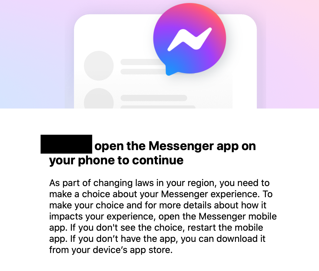 End-to-end encrypted chats won't appear in this browser. Try updating your browser or use another one."