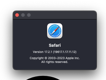 Вам следует обновиться до Ventura 13.6.3 и Safari 17.2.1.