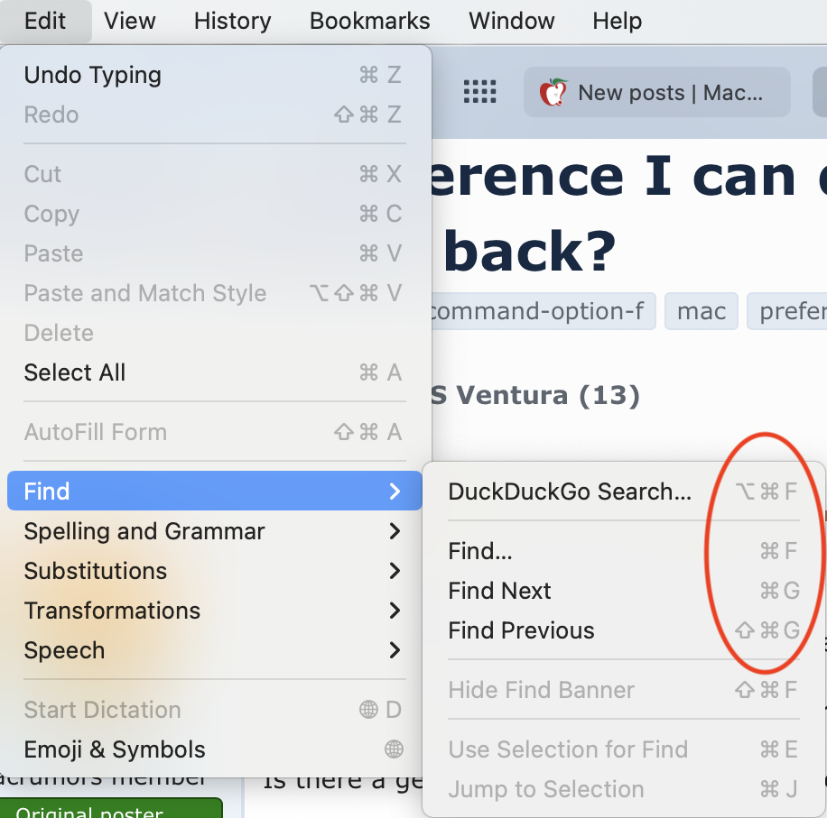 For some reason, in the last couple of days, command-option-F no longer works to start a search in Safari on my Mac running Ventura; if I press the key combination in Safari, nothing happens.