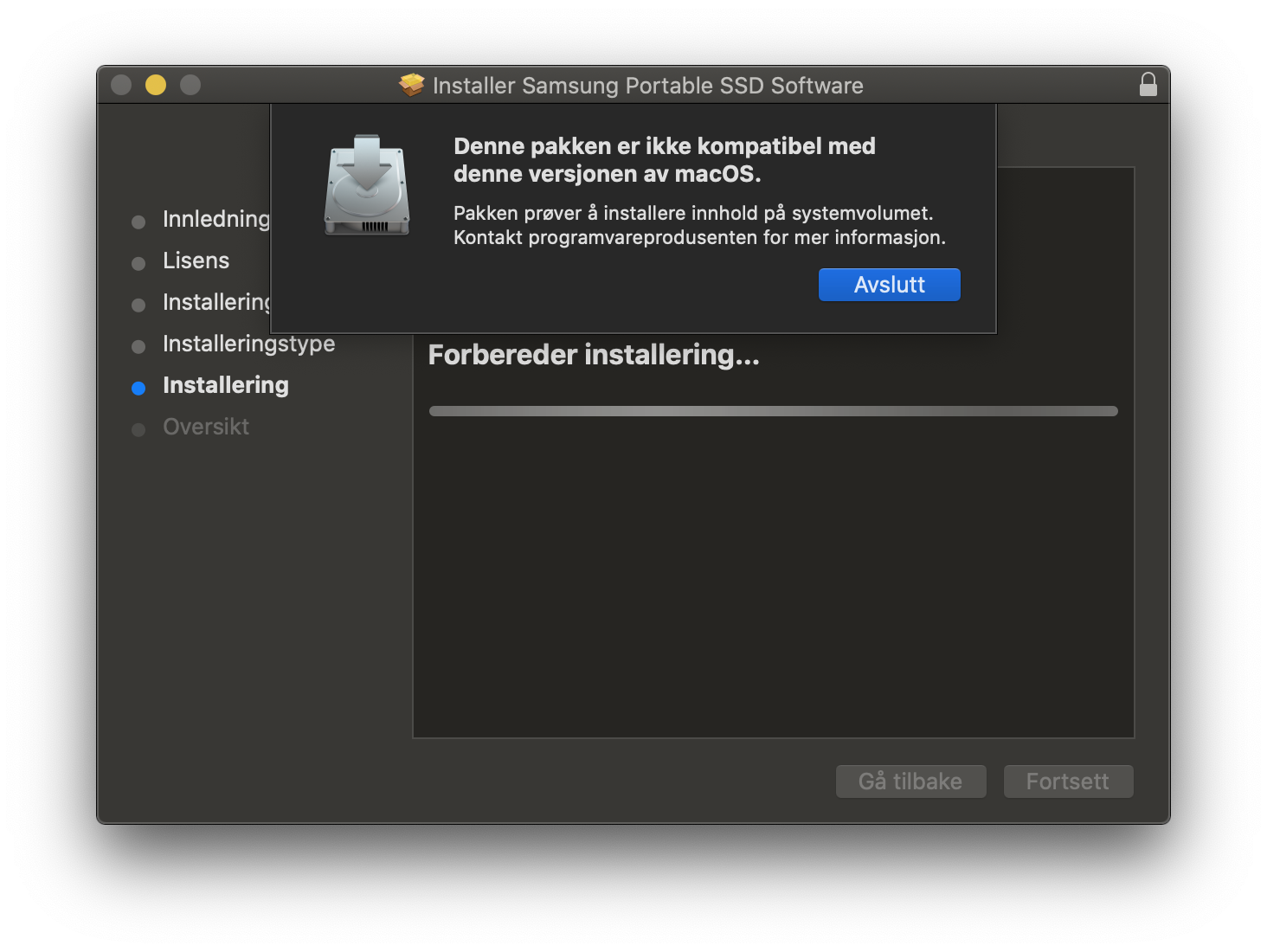 I did a clean install of macOS Catalina yesterday evening, today I was going to install software from Samsung to unlock, and manage their external SSD's, (T3, T5 and X5), and was met by a message saying:
