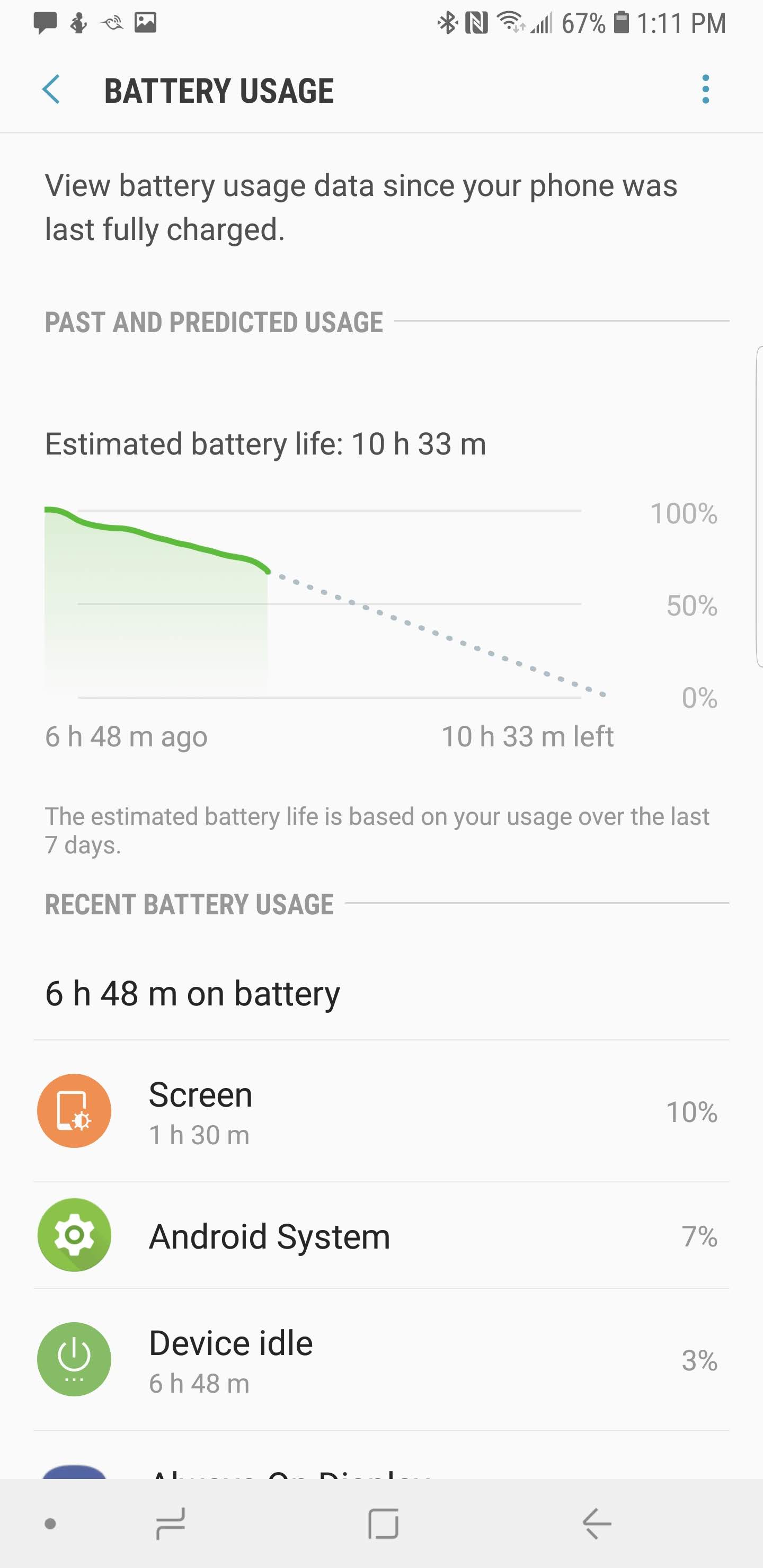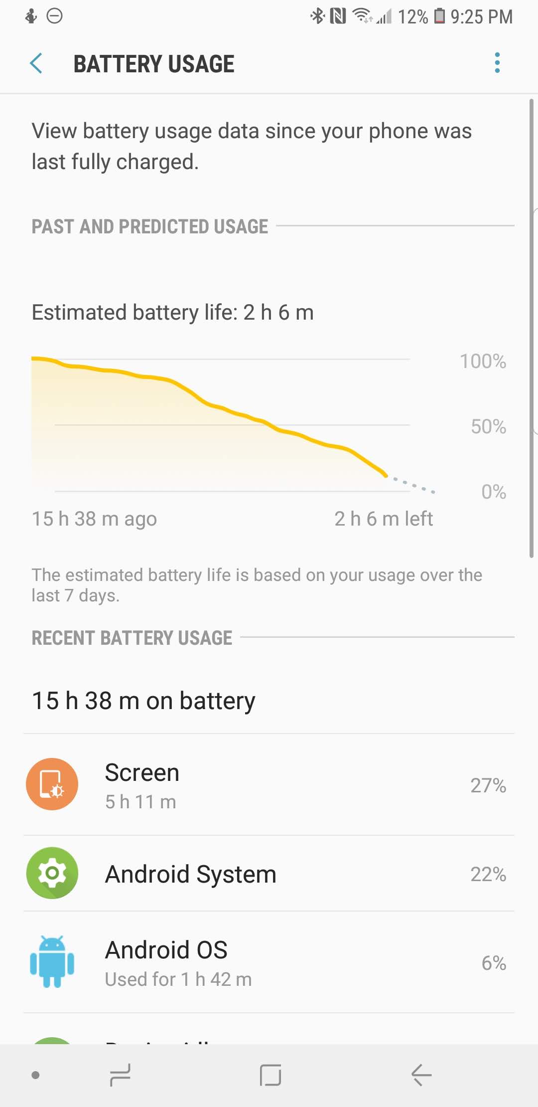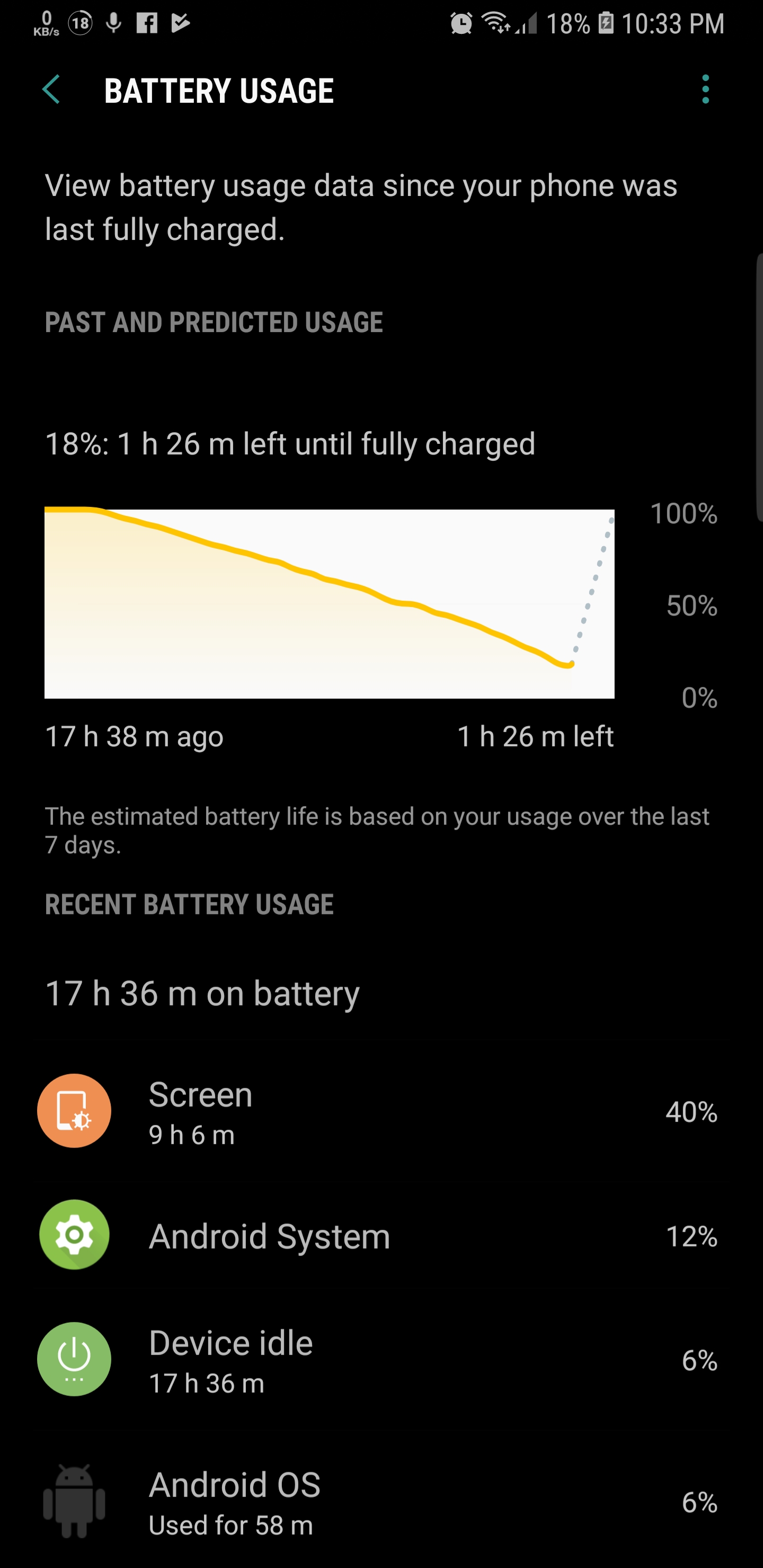 [doublepost=1539532449][/doublepost]And here is what it was after almost 7 hours off the charger, but only 1 hour and 30 minutes of usage, and already down to 67 percent. That was a lite day.