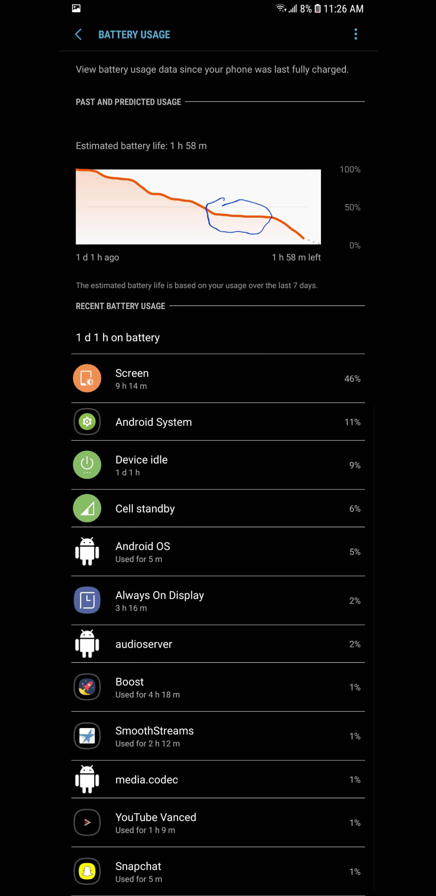 Circled is battery drain while I was sleeping. Below is 4 hours of stuff on reddit, 2 hours of streaming live Tv,and an hour of YouTube. That's on top of emails and texting which doesnt consume enough power to show. Not to mention constantly being connected to my watch and speakers. Does this look more than reading books to you? View attachment 794953