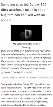 Software updates can't solve all Galaxy S20 Ultra camera focusing issues, tips Samsung