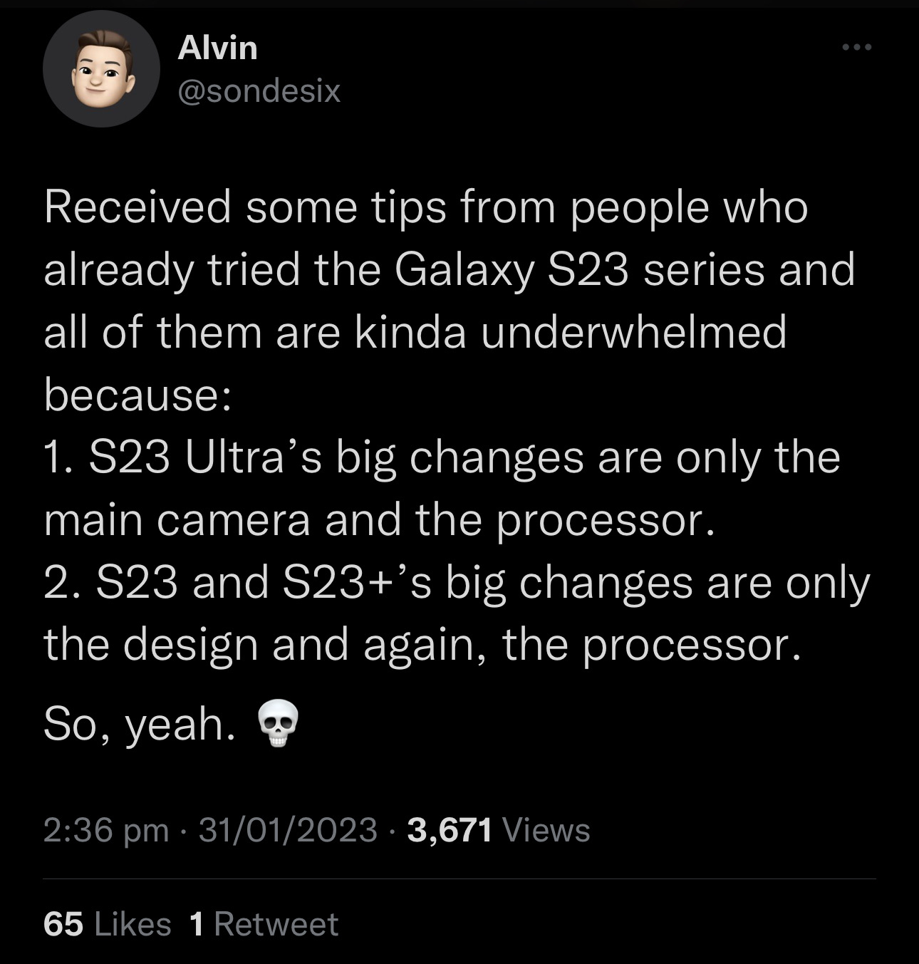 TMSC fabbed 8gen2 will have CPU efficiency rivaling A15, and GPU efficiency better than A16. The one who is slacking actually is Apple, which is why they use A15 on the iPhone 14. A16 offers almost no improvement (and sometimes worse) than A15 in efficiency.So not iPhone 13 Pro Max or 14 Pro Max level then. I'm glad that Samsung have kept the same design though, I love the design of my S22 Ultra. In my opinion it's a better design than my 14 Pro Max.