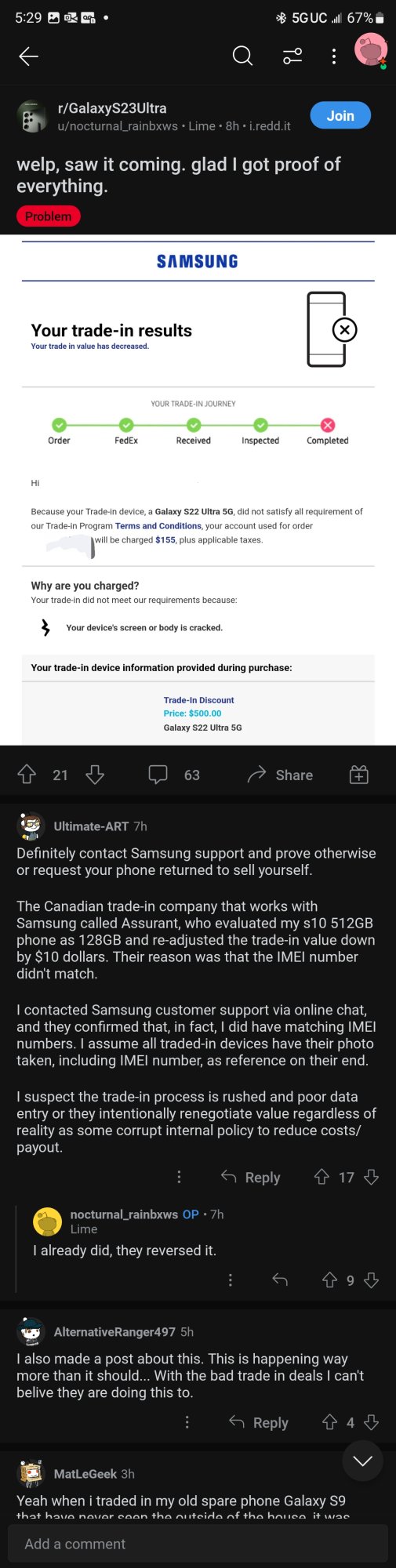 I love love the S23 Ultra as all of can tell from my posts here in this thread. But as a matter of principle...I cannot take a bogus claim my trade in had a cracked display when I know it did not when I sent it in to Samsung!