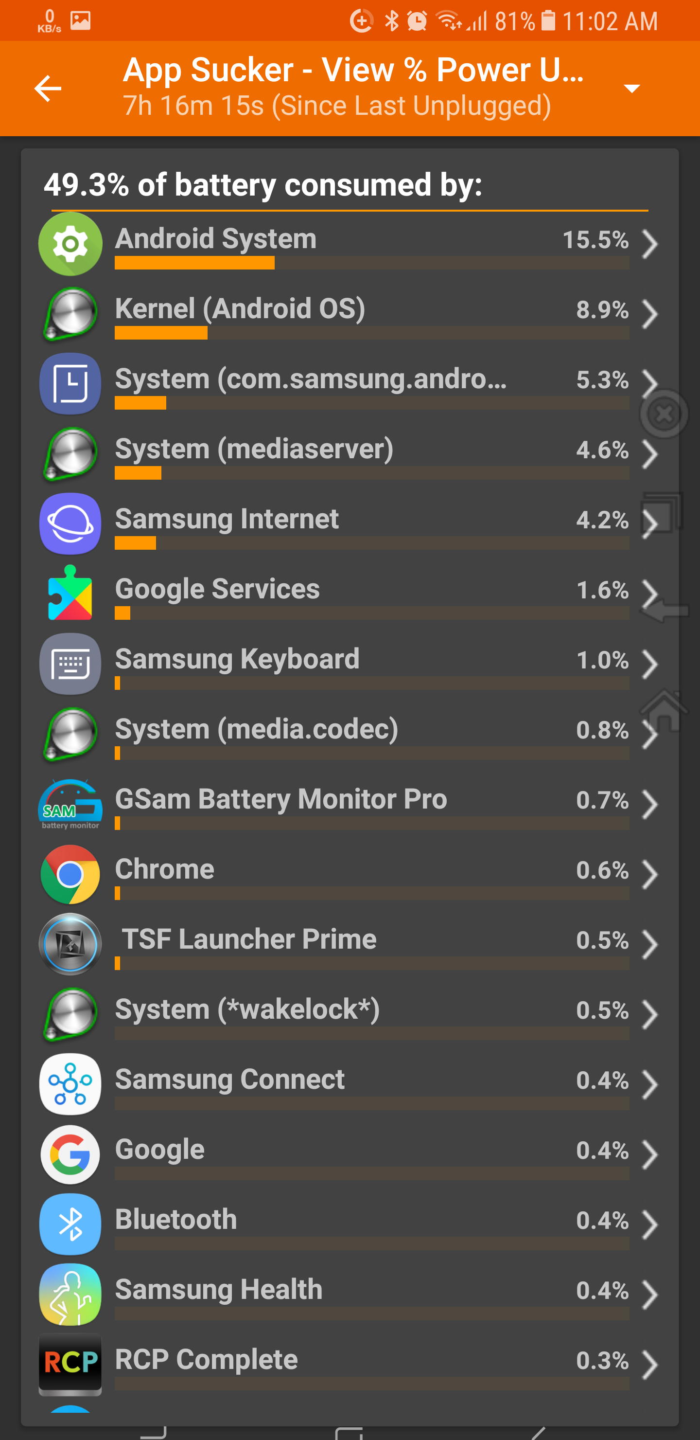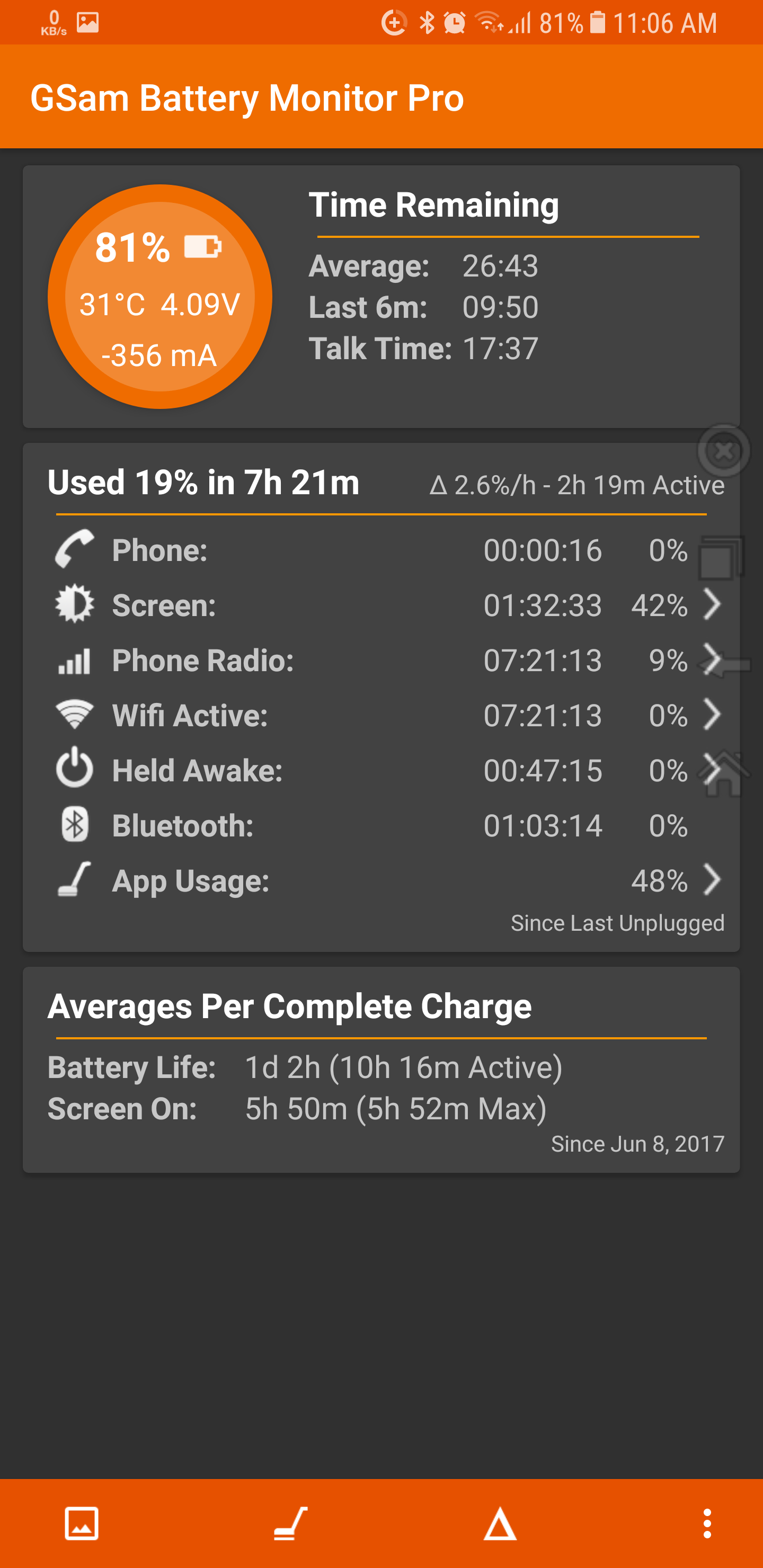 Currently have 39% left. Its been off charge for 8 hr 37 mins and SOT is 2 hr 14m