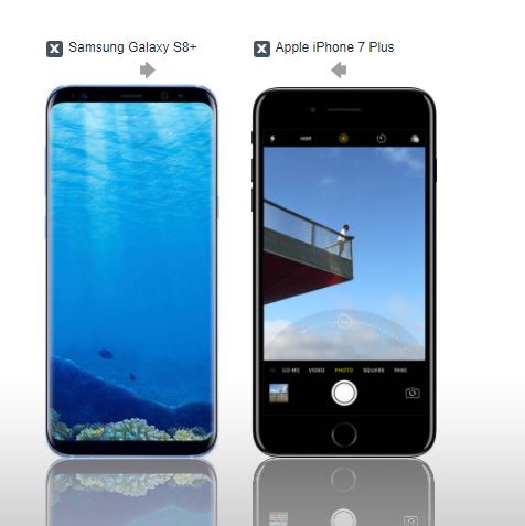Here is the S8+ and 7+ side by side, they don't have the Note 8 yet as it hasn't been announced. But this site lets you compare phones side by side