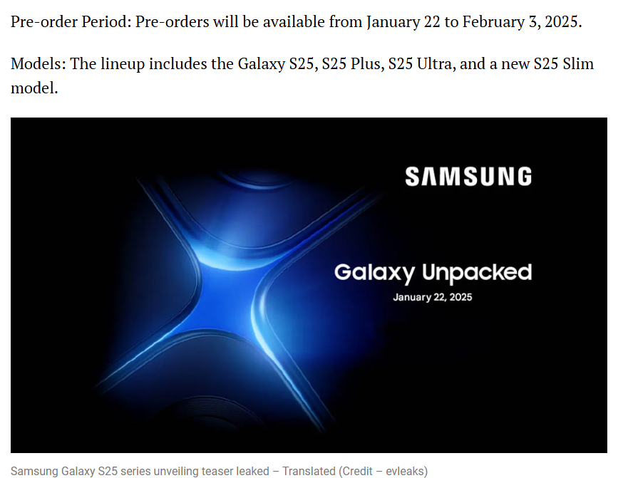 Also the S25 model will have an increase in RAM & the Elite in the international version.