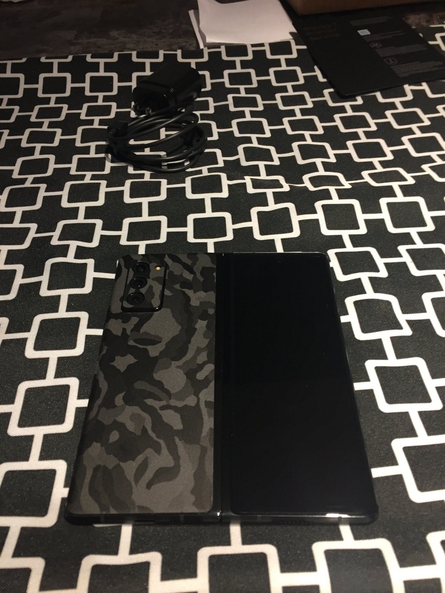 Custom Gold hinge arrived today. Slapped the camo dbrand skin on it right away and now waiting for a case to come in. This device is mesmerizing 😮