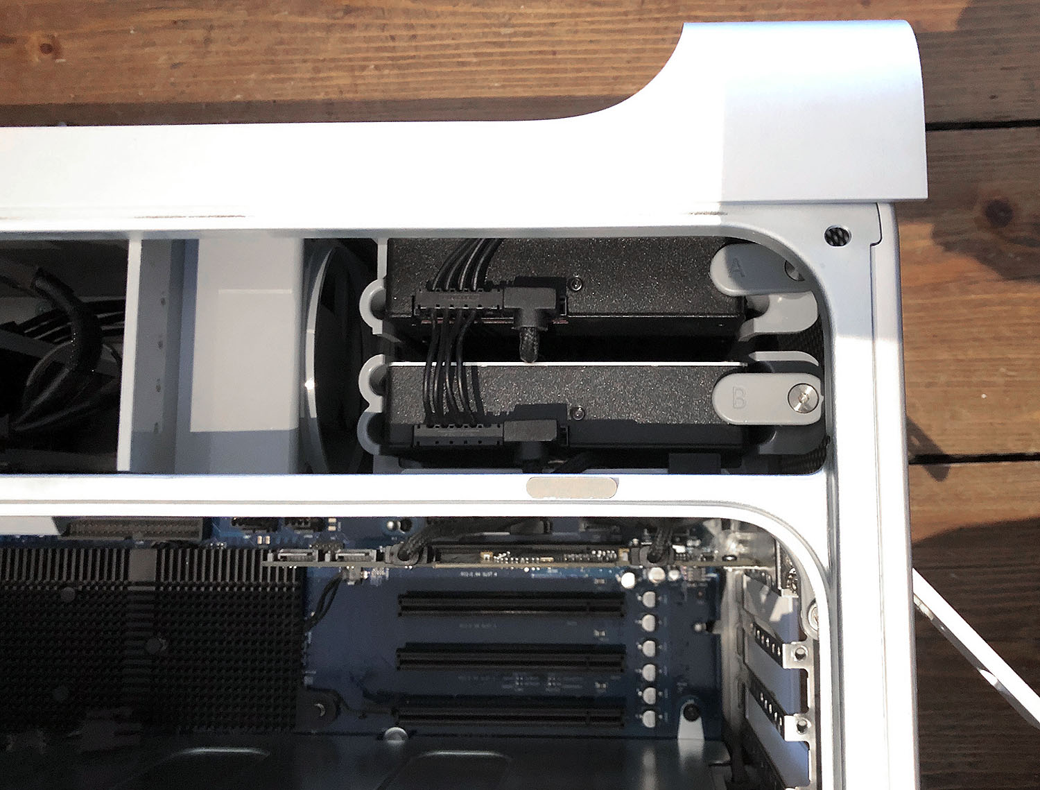 Sadly they do not 100% follow the formfactor, beeing about 1,5mm too long in the back, causing the lock for the lower tray to not be closeable anymore. So i left both of them open. Held by three cables each, they won't go that far anyway.