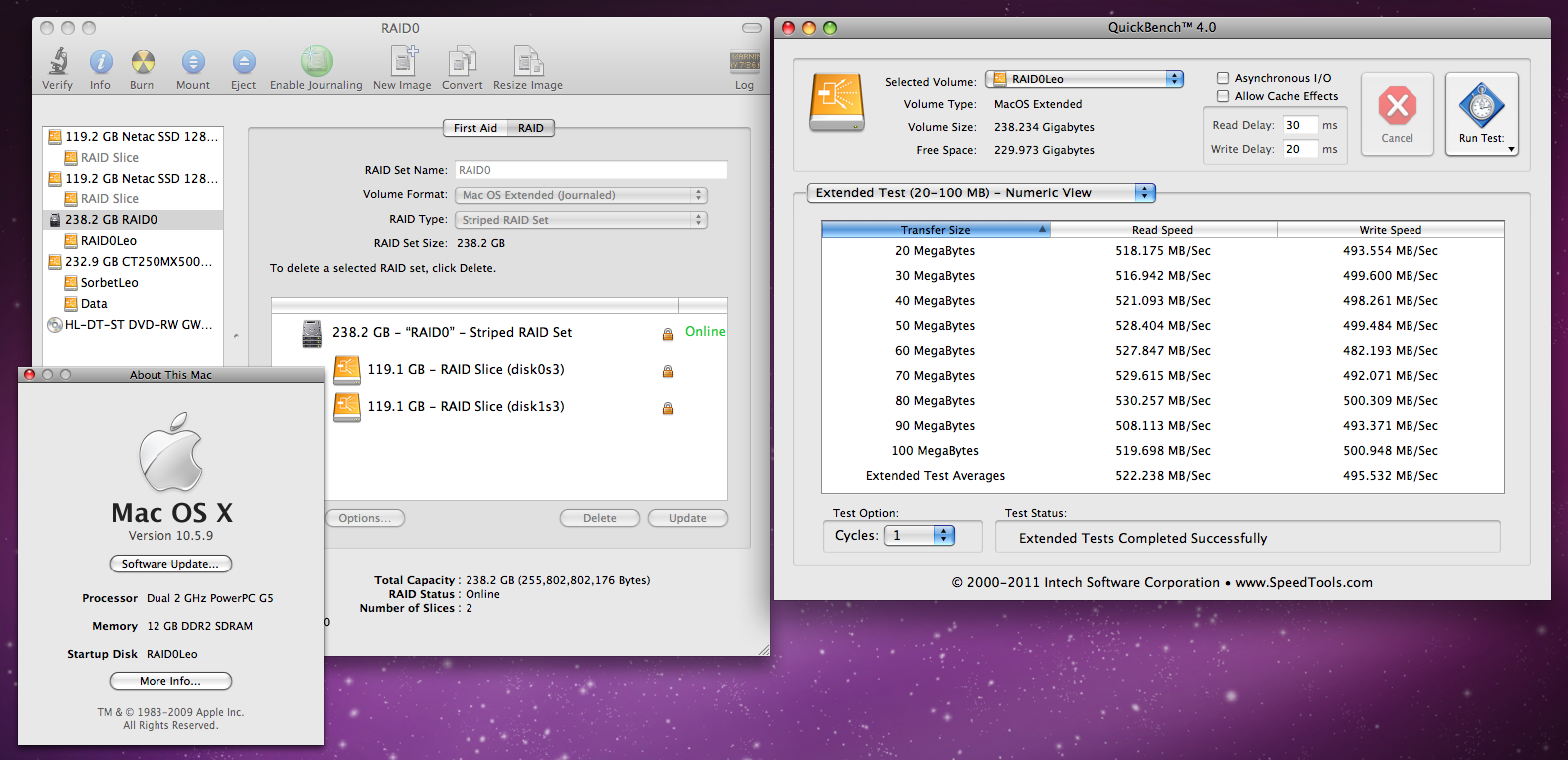 Benchmark results are one thing. Real-world transfer speeds are usually much less once CPU/file system overhead/losses are taken into account. So far, my Quad setup has proven to be capable of delivering (reliable) real-world sustained file transfers at up to 1.01 GB/s in Finder. All while booted from the actual storage itself.