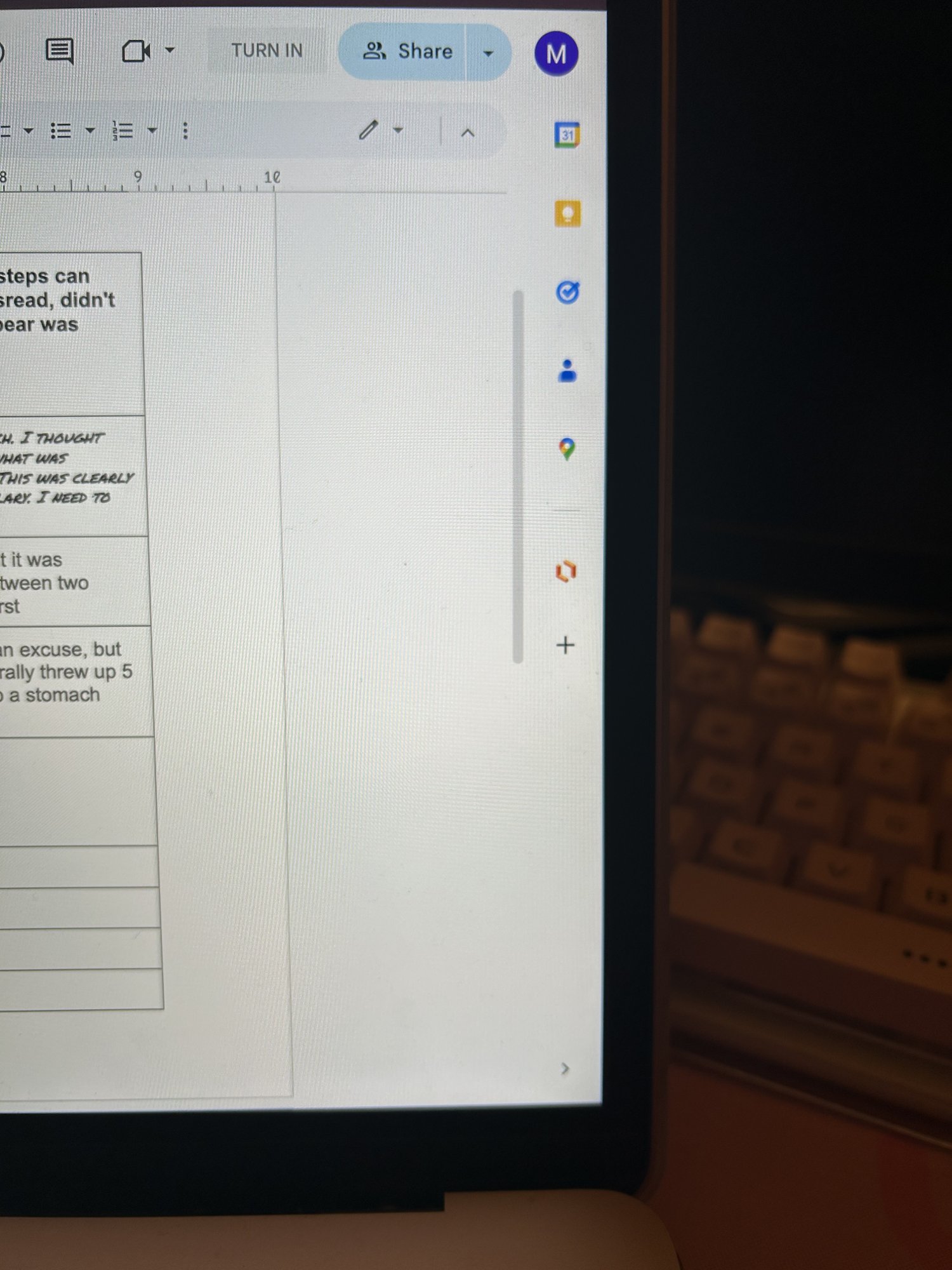 hey yall, im very new to this forum but i had a quick question. idk if anyone can see it from what i have linked but, theres like a line of discoloration on my mac(maybe??). to my knowledge i haven’t damaged it or anything, sometimes i fall asleep with it right next to me from watching netflix before bed, and i dont lay on the screen or anythinf(just sometimes am laying on the bottom corner of my keyboard. is this just me seeing things? or is there some sort of issue with it? i know i sound overly obsessed about it, but this thing was so expensive for me and i dont want it to be messed up