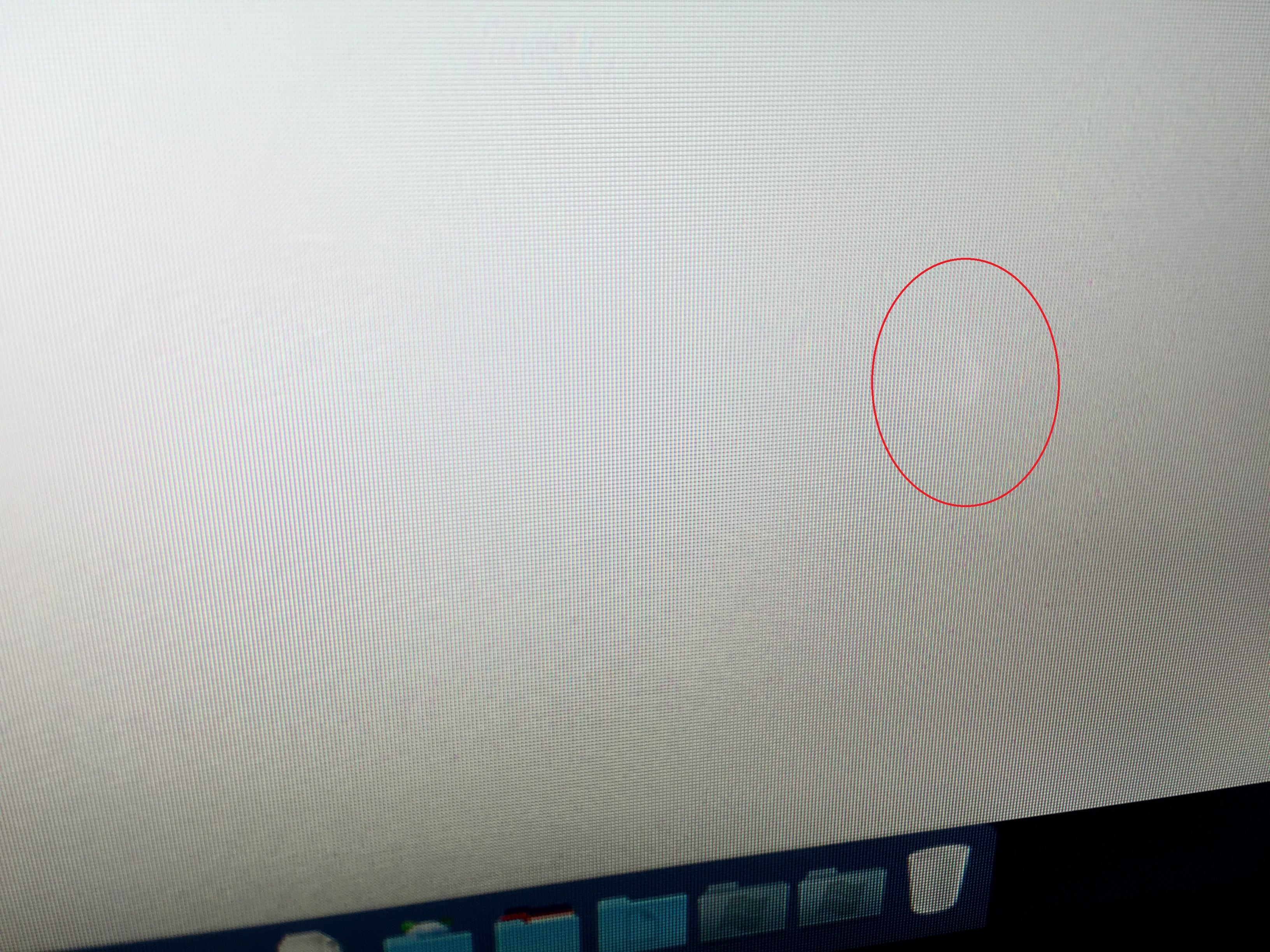 As you can see in the image below, there is this bright squiggly object in the bottom right corner of my iMac's screen. The computer is just under 4 years old. It is much more visible in person, and the artifact, or whatever it is, has depth to it, indicating to me that it is inside the screen or at least behind the glass. I have just started noticing this now.