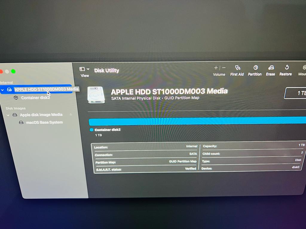 While still in Internet Recovery in Disk Utility, select the disk itself at the very top where it starts with ST350...