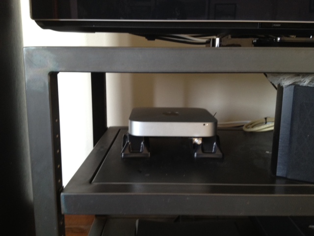 Also, sorry to disagree with Guf but the MacMini patented fan system only works with the black base on. It draws air through the Hard drive edge of the black base, through the hard drives then across the logic board and CPU then through the fan and most importantly across the heat sink and out the back. You MUST use this system to cool your Mac Mini otherwise the heat sink is not operating properly (or at all) and the CPU is not cooled. You can't simply blow air on the logic board. Google patent apple machine fan or similar. See also image if it uploads. On that note, if you really want to cool down your MacMini use arctic silver heat sink past and sit the mac mini on its side in a Newer technology stand. Drawing in of air works perfectly and both sides are cool. My temp on both my mac minis is around 35-40'c (do the maths) with the MacMini server (with a proper fan) rarely heating up for any length of time.