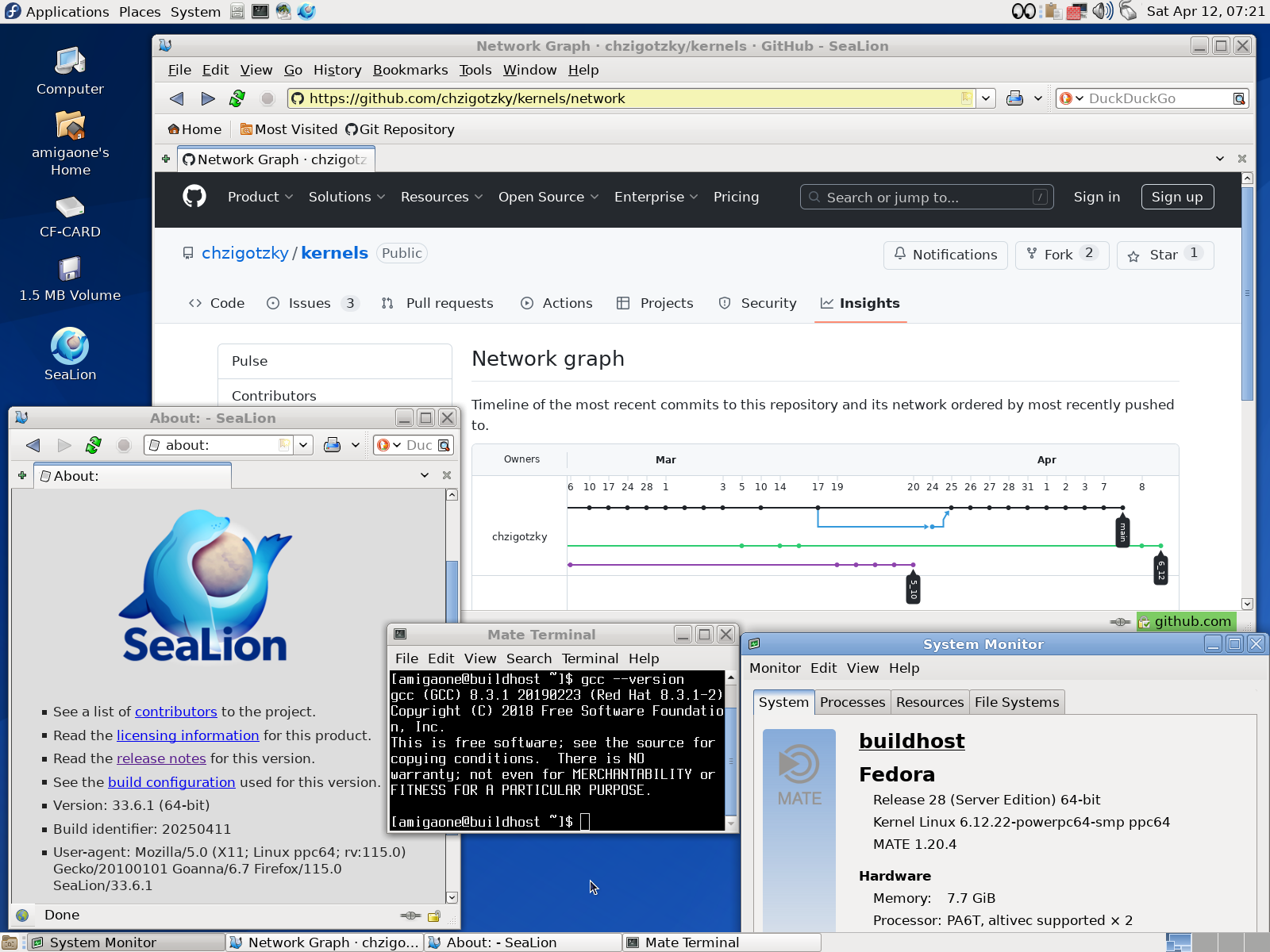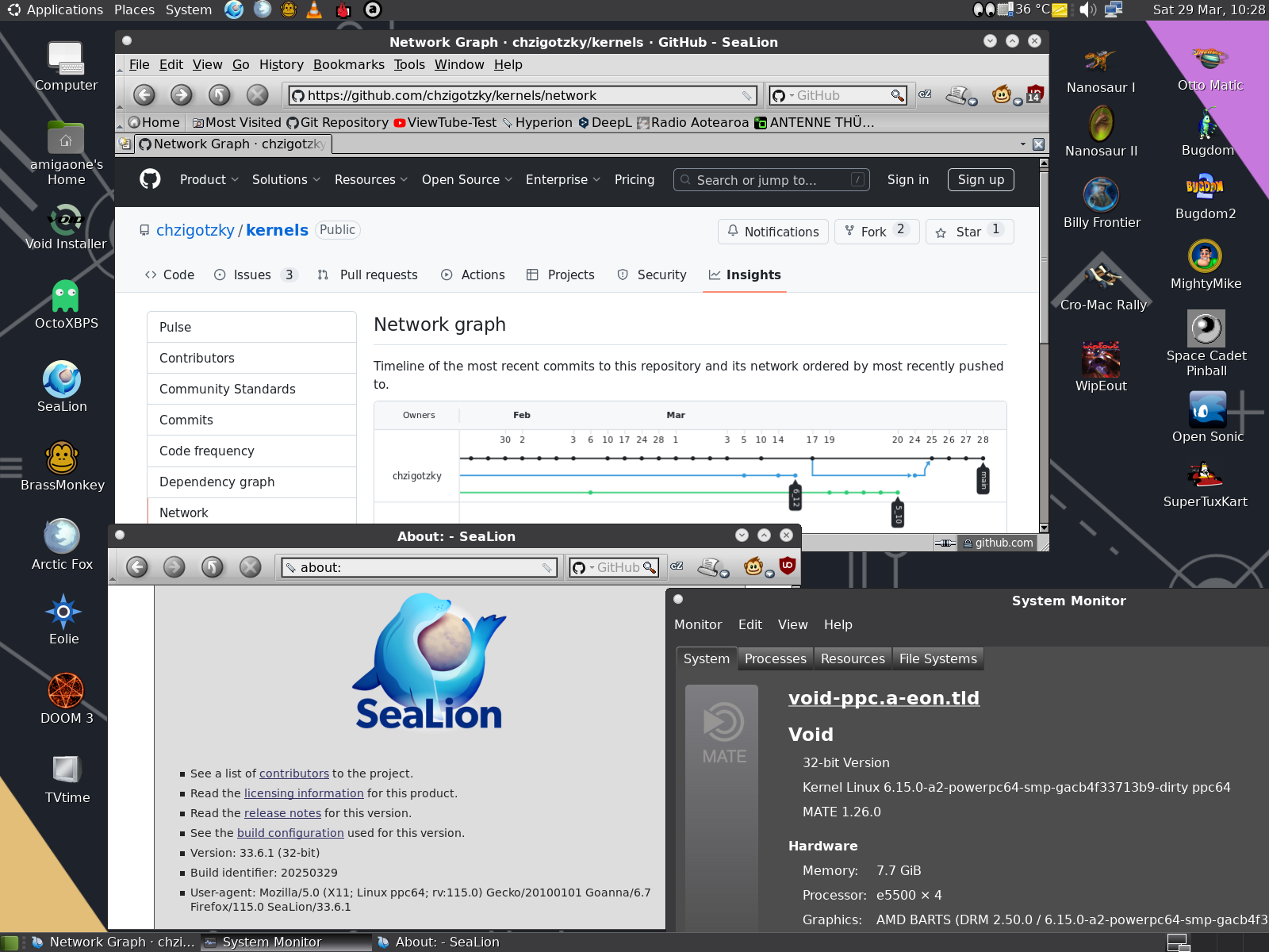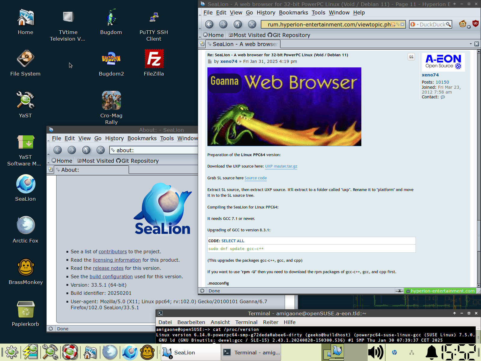 I compiled SeaLion 33.4.0 with the new Goanna layout and rendering engine 6.7 for older Linux PPC distributions for example Void PPC without AltiVec support today.