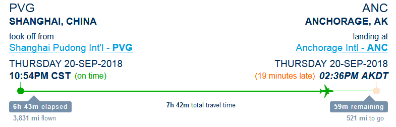 Doesn't seem like it was a departure from China, seems like they move around China before departing to Korea, then to Alaska. Wouldn't surprise me to see Sept 24rth move to the middle of the week.Has anyone been able to find the flight number for this flight?