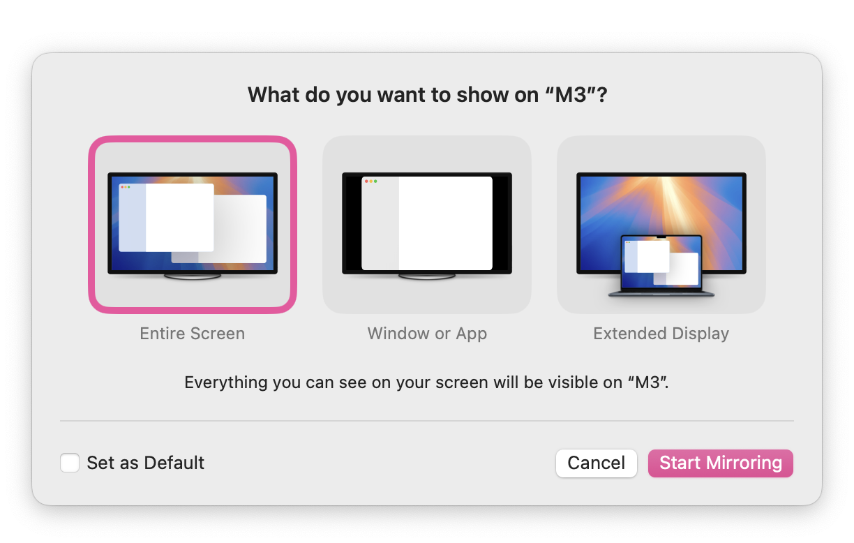 The Macs are M3 and M4 Pro, so also no big age difference. I tried if it might work with my M2 Pro MacBookPro on one of both Macs but that also did not work. For the iPad only display sharing no mouse courser anymore.