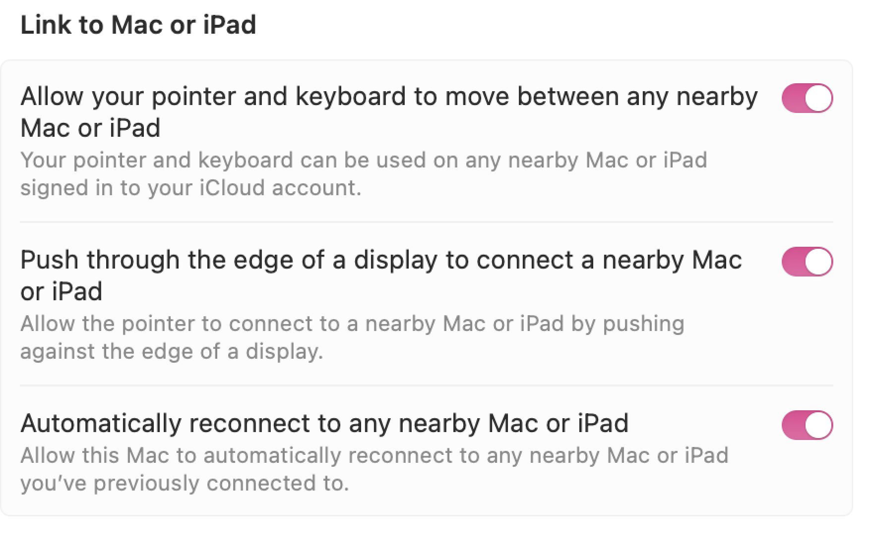 Universal Control was an exception I never heard of it until I found it in System Settings. I didn't even know how it is called. Sidecar for iPads was the last I heard of.