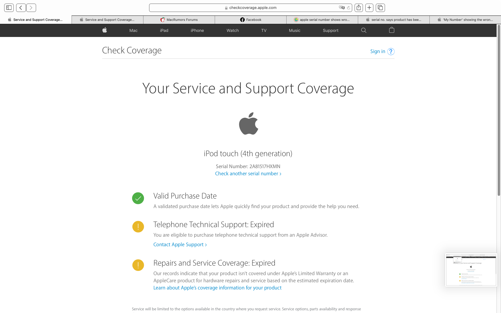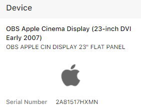 I'm about to buy a second hand Apple Cinema Display 23", and I asked the seller to give me the serial number so I could check whether it's a 2004 or 2006 model (since the latter has twice the contrast ratio). However when I checked the Apple Coverage website the display's serial number belongs to an iPod?