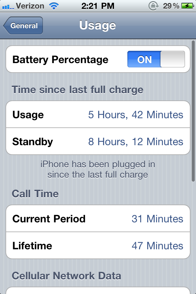 I get on average about 9 hours of usage out of mine before it dies, thats about 3/4 days for me. My old iPhone 3G needed charging alot more.