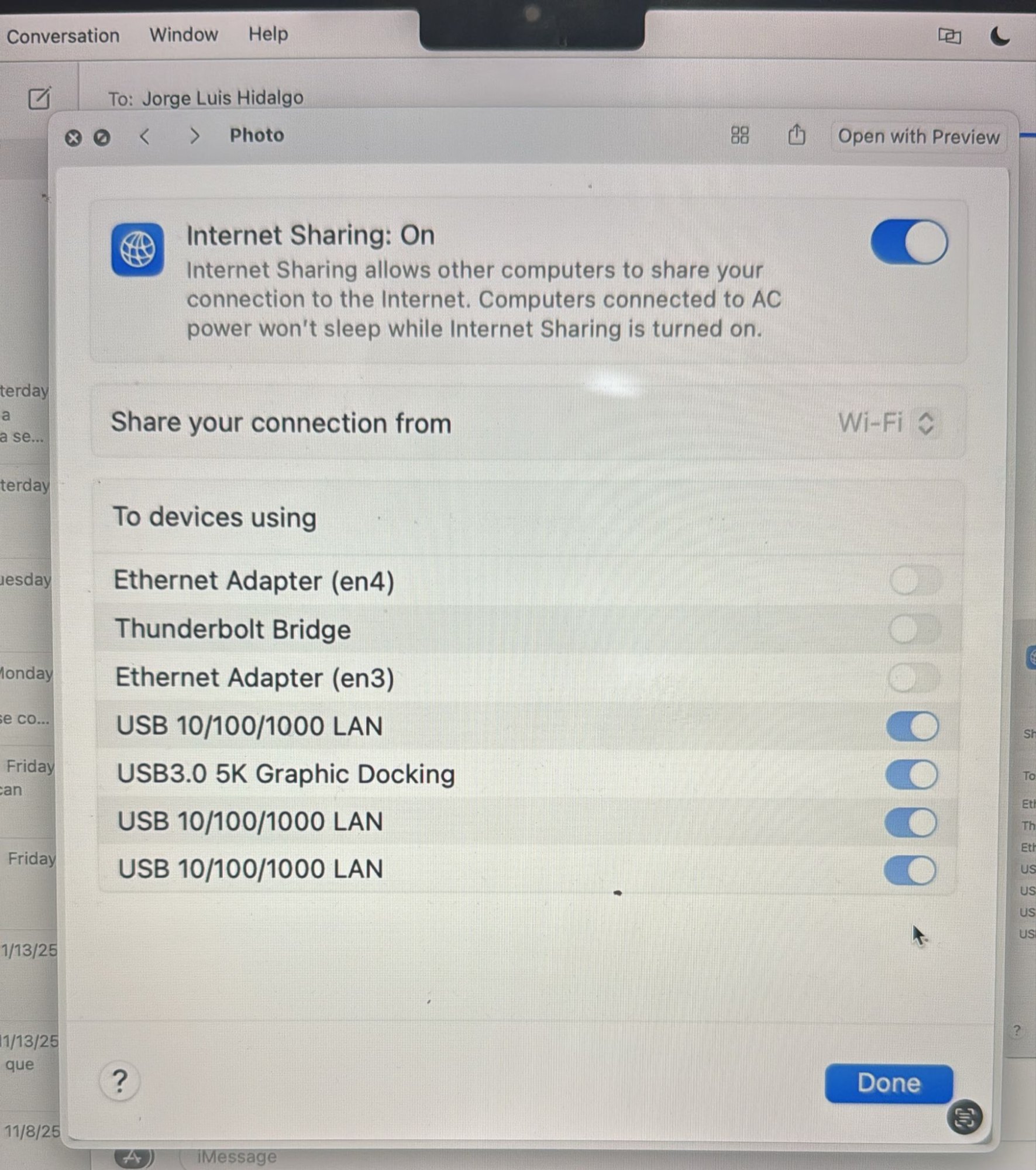The macbook doesn't have an ethernet port so I am using an adapter to go from usb-c to ethernet.