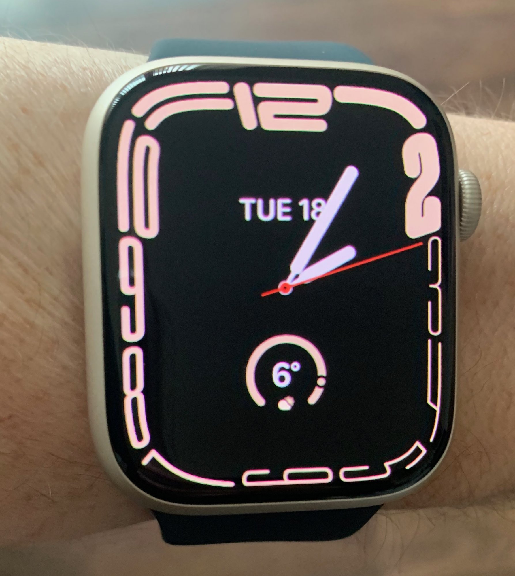 My new watch arrived today. I think the contrast between the midnight strap and the starlight watch works well. Looks a lot better in real life than it does in photos. I want to try some more straps now, though.
