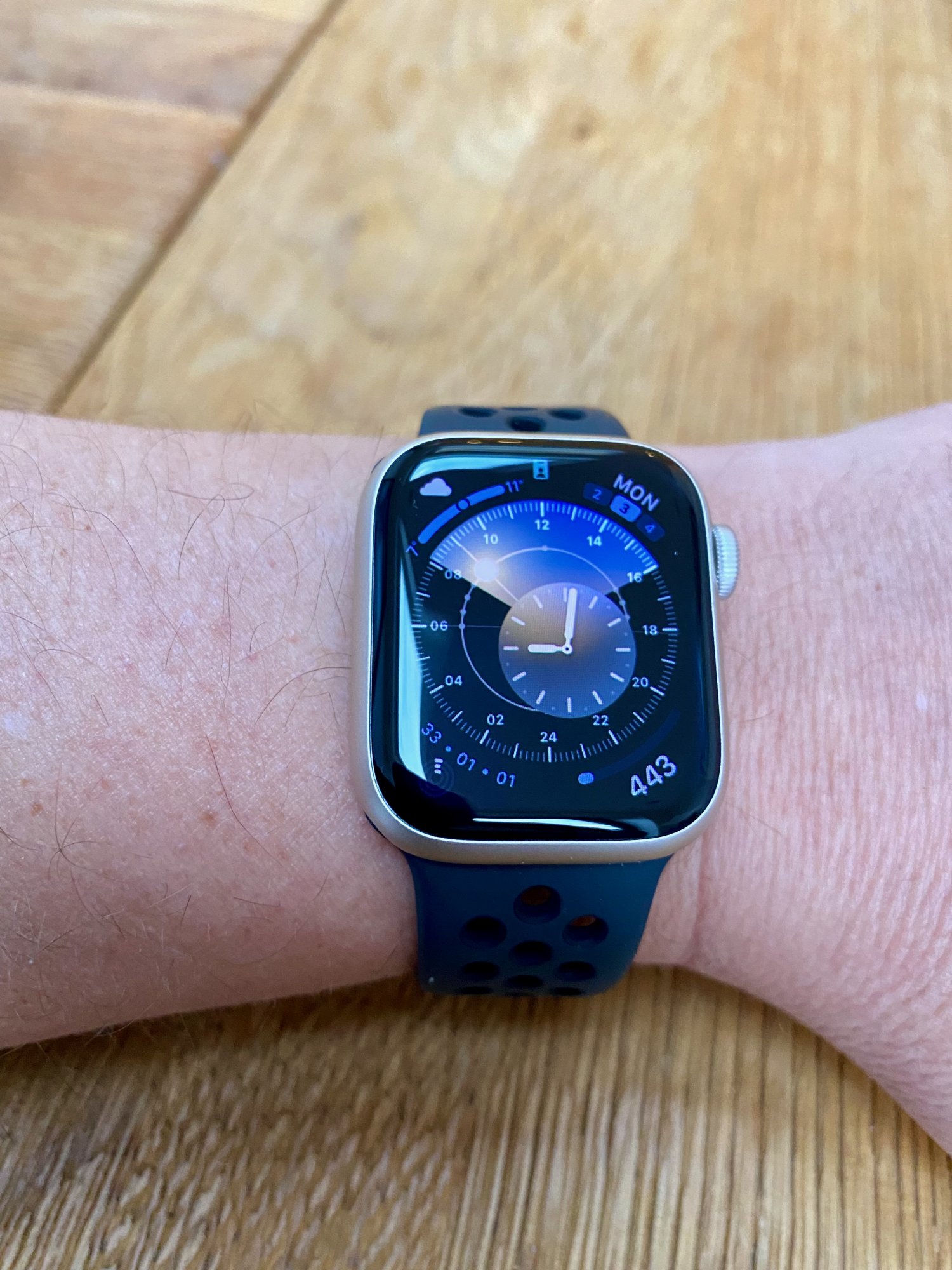 My new watch arrived today. I think the contrast between the midnight strap and the starlight watch works well. Looks a lot better in real life than it does in photos. I want to try some more straps now, though. View attachment 1946195
