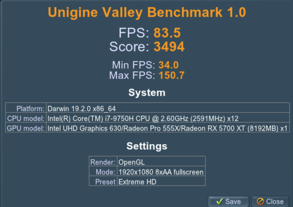 All in all, here are the results of both GPUs in case if someone else is thinking to spend money on eGPU. Both results for the internal display of the iMac.