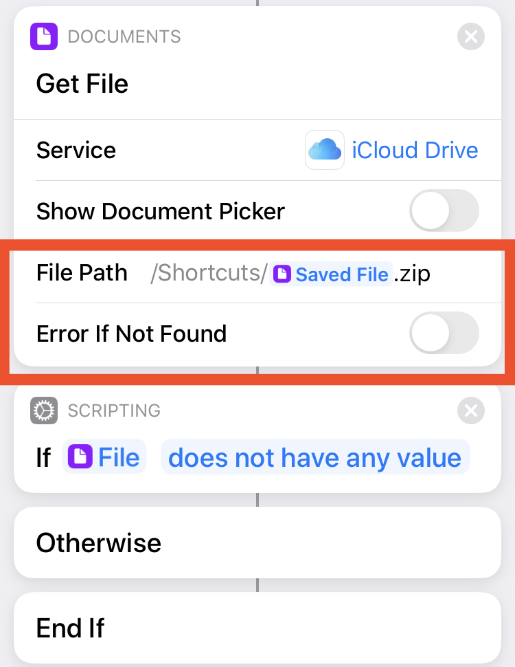 When I ran my shortcut (without WiFi) it ran successfully, yet when I went to check my uploaded files (in the Files app) it indicated that I had an “Upload Error”.