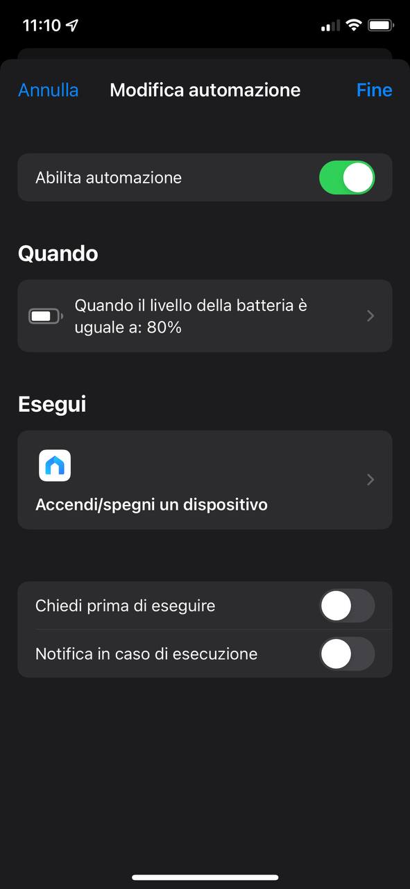 I've made an automation when the battery is 80% set tapo plug to off but it seems like it does not work, I don't understand if it's the automation not starting because if I create a new shortcut to check the battery level and turn the plug off when battery is >80% it works, so I guess the problem is not the smart plug.